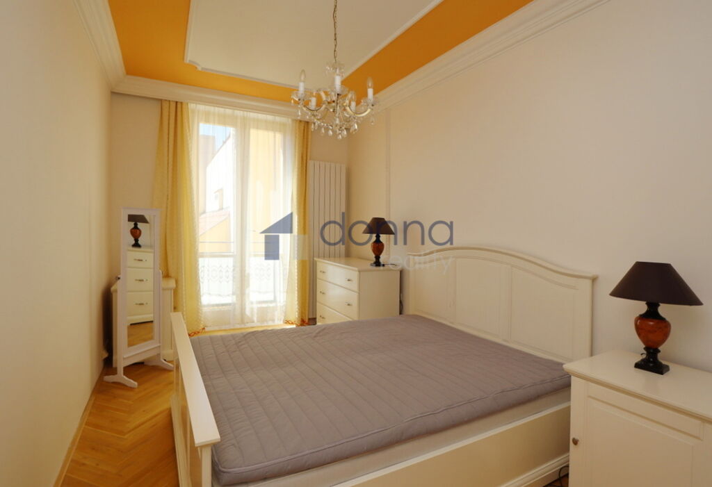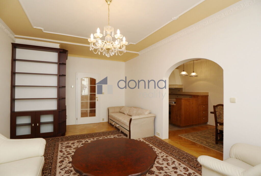 Byt je kompletně zařízený a sestává z velkého obývacího pokoje, plně vybavené kuchyně s jídelnou, ložnice se vstupem na balkon, koupelny se sprchovým koutem, WC a z prostorné předsíně. Obývací pokoj a jídelna má okna do Mostecké ulice, ložnice do tichého vnitrobloku. Na podlahách parkety a dlažba. Topení je centrální. Dům se nachází v atraktivní lokalitě v blízkosti Karlova mostu, v samém srdci starobylé Prahy. Skvělá dopravní dostupnost, tramvajová zastávka Malostranské náměstí hned za rohem, 1 zastávka na metro A, stanice Malostranská.