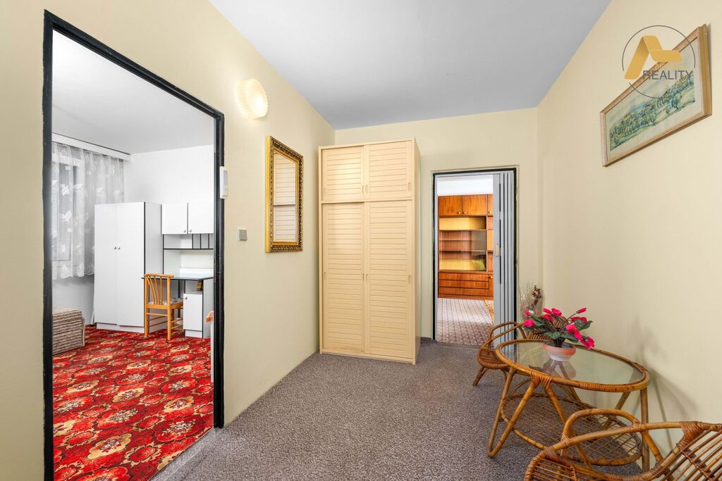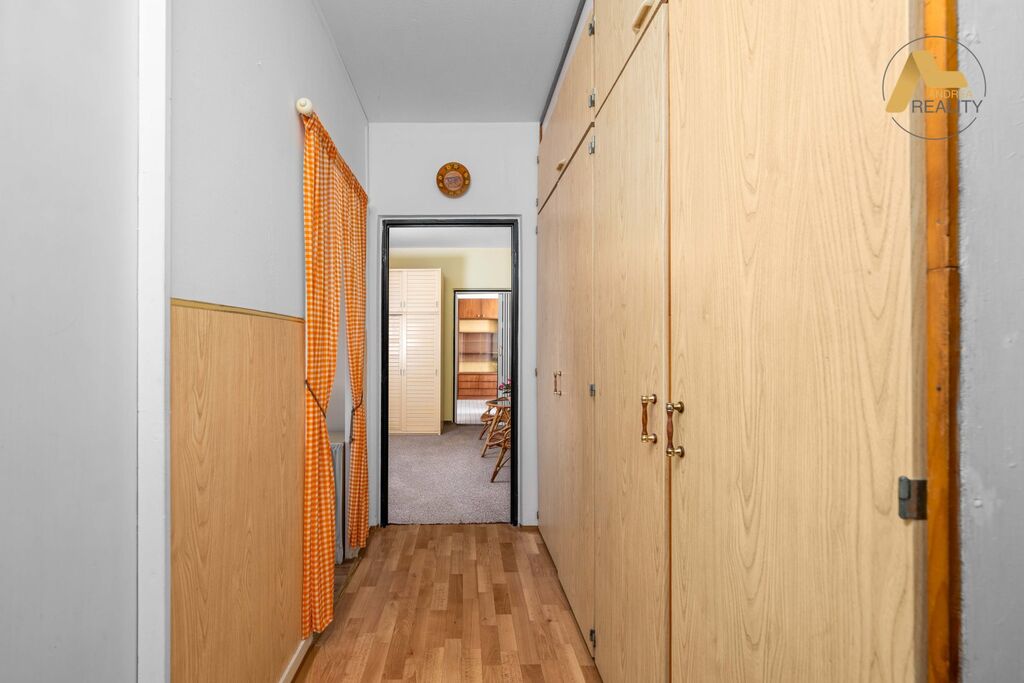 Za vchodovými dveřmi bytu se nachází předsíň (5m2) s přístupem do koupelny a toalety (3,5m2), dále se chodbičkou dostanete do kuchyně s jídelnou (11m2) s dostatkem světla a následuje vstup do prostorné haly (7m2), ideální pro posezení, či pro úložné prostory. Odtud vejdete do obývacího pokoje (20m2), na nějž navazuje zcela samostatně neprůchozí ložnice (12m2). Obývací pokoj má přístup na prostorný balkon (4m2) a pěkný výhled do okolí. Vaše prohlídka této nemovitosti nemůže pominout další z neprůchozích ložnic (12m2). Uvedené rozměry jsou orientační.