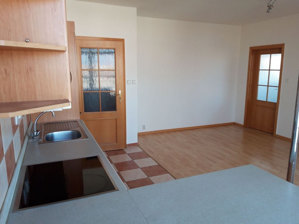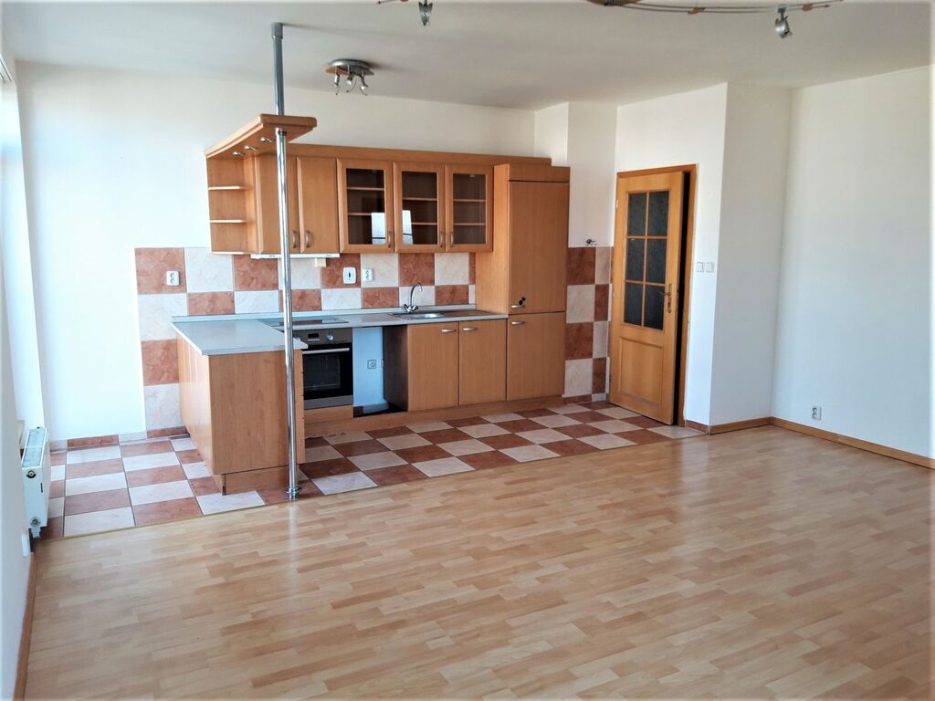 Vybaveno pouze kuchyňskou linkou s vestavnou troubou, lednicí a mrazákem.