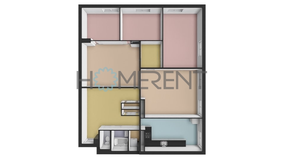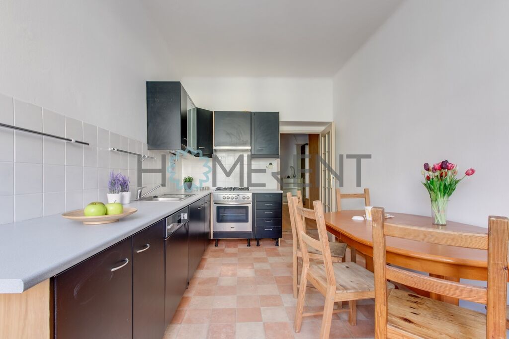 V bytě najdete obývací pokoj a plně zařízenou kuchyní s lednicí, digestoří. myčkou a sporákem, 2 ložnice s postelemi, další 2 místnosti, které lze využít např. jako pracovnu či dětský pokoj, koupelnu s vanou, samostatné WC. Nachází se zde také pračka a byt disponuje velkým množstvím úložného prostoru vč. samostatné komory.