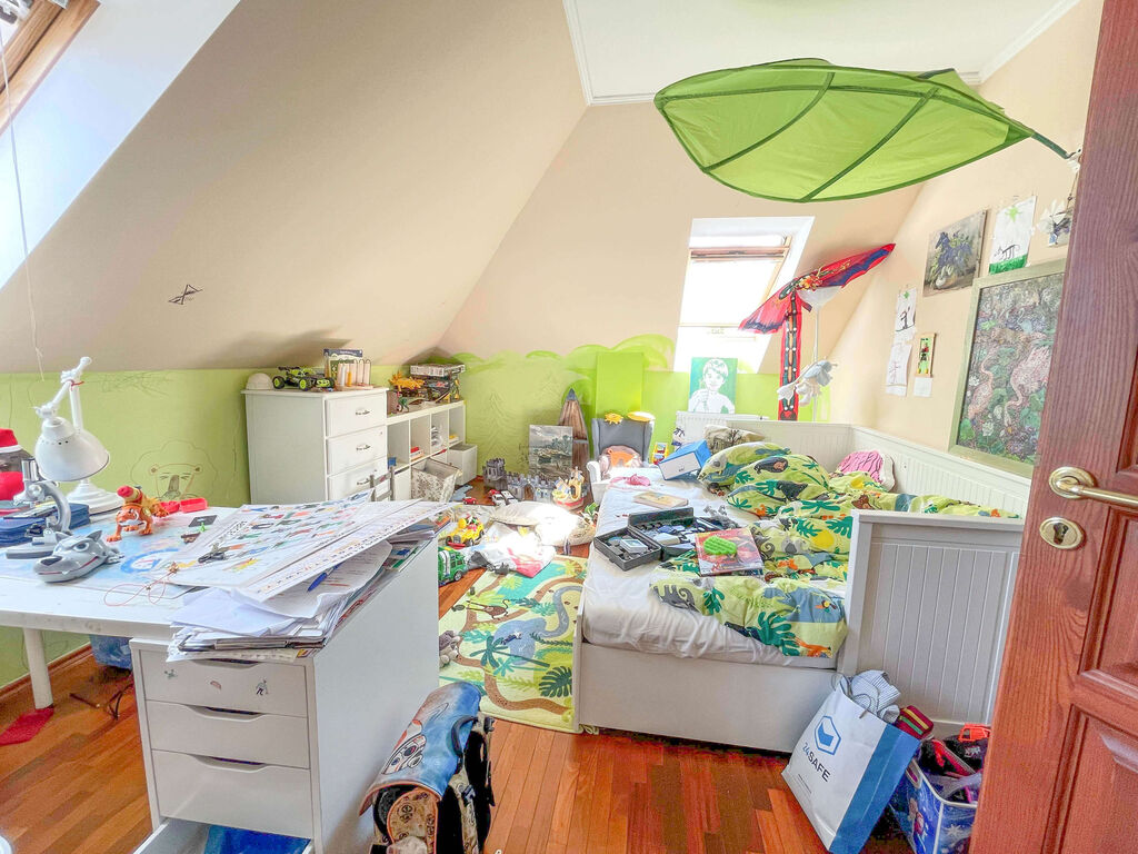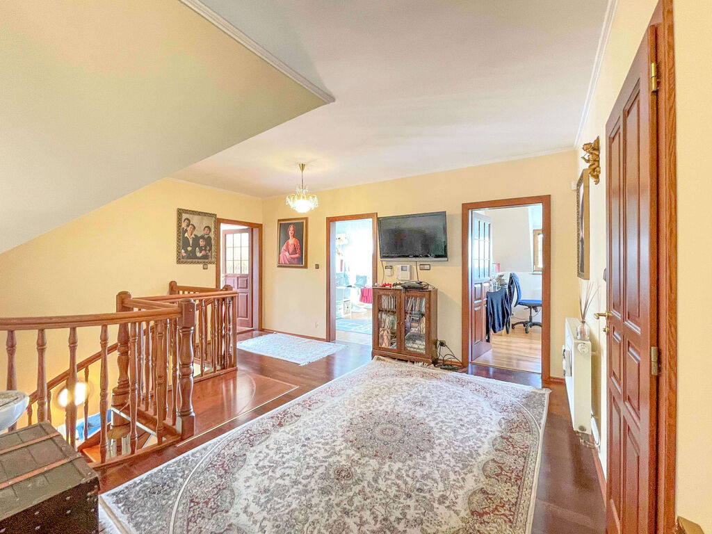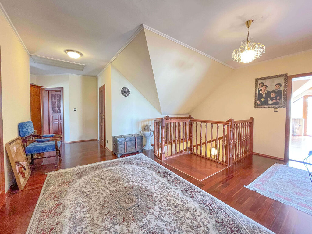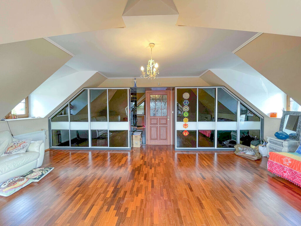 • 1. patro: 4 ložnice (část s balkonem), prostorná koupelna: masážní vana, sprchový kout HÜPPE, sauna, WC a bidet; fitness/úložná zóna. Dvě jiho-orientované ložnice mají klimatizaci s možností přitápění.