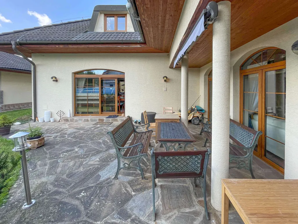 Dispozice 6+1, užitná plocha: 296 m², terasa, samostatná dvojgaráž 49 m², celková plocha pozemku 958 m². Výborná dostupnost na Prahu (Smíchov cca 15 min, centrum ~25 min), klid u Brd a maximální soukromí.