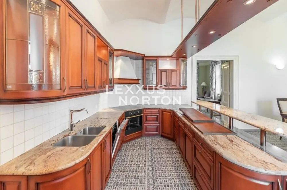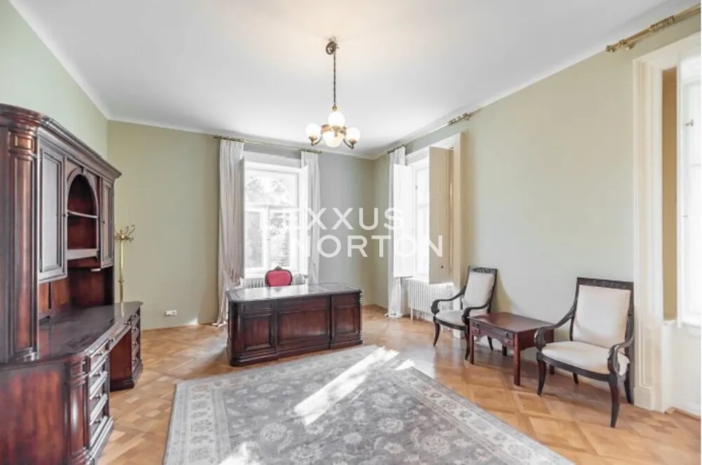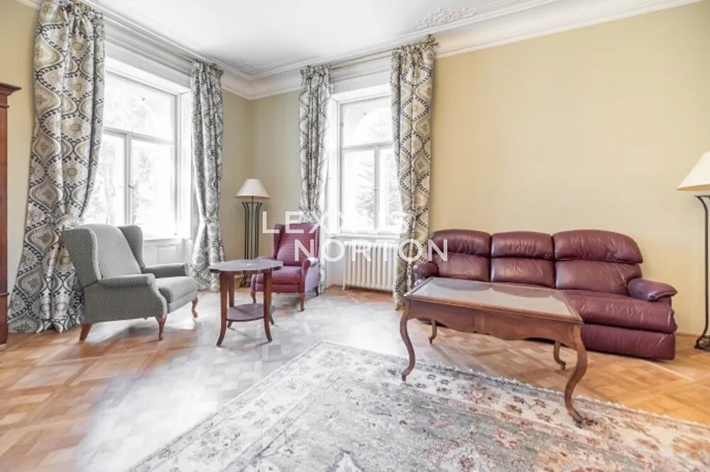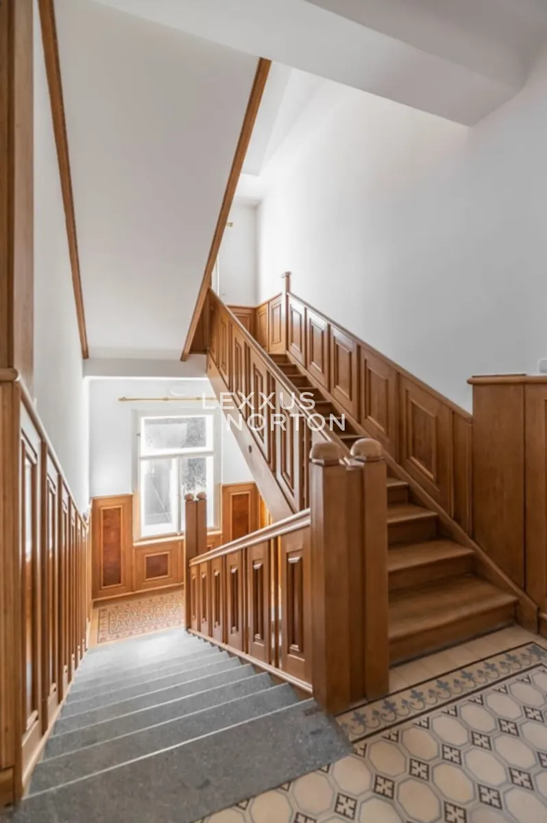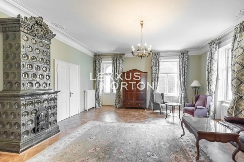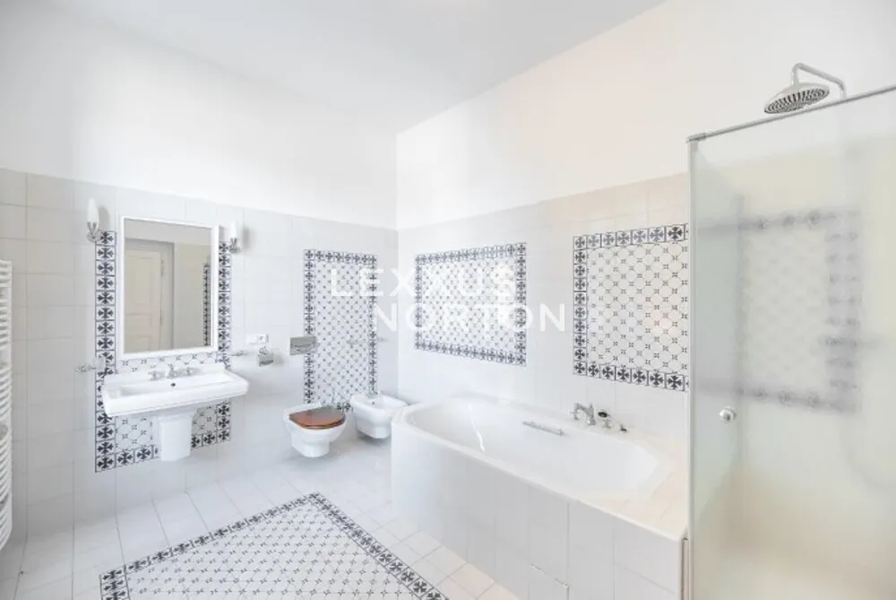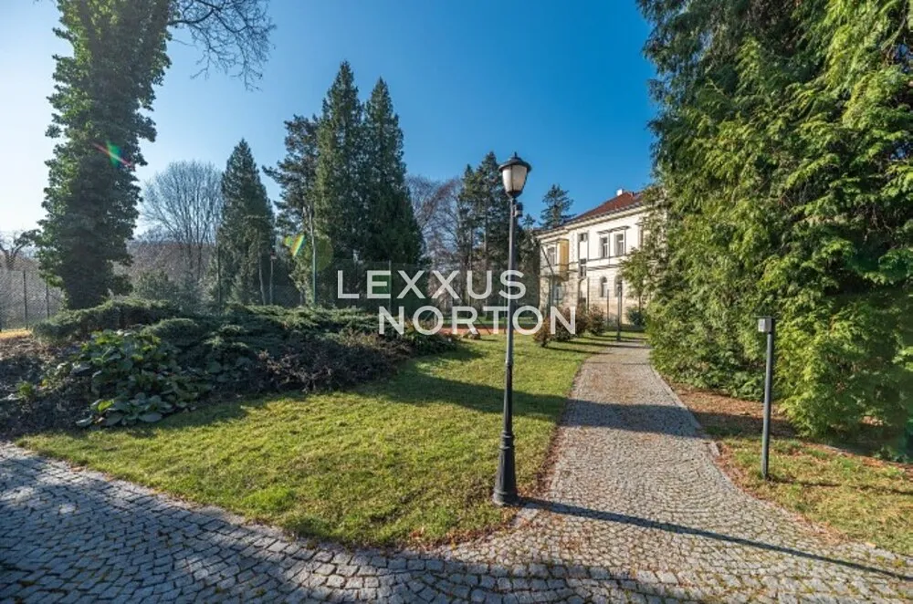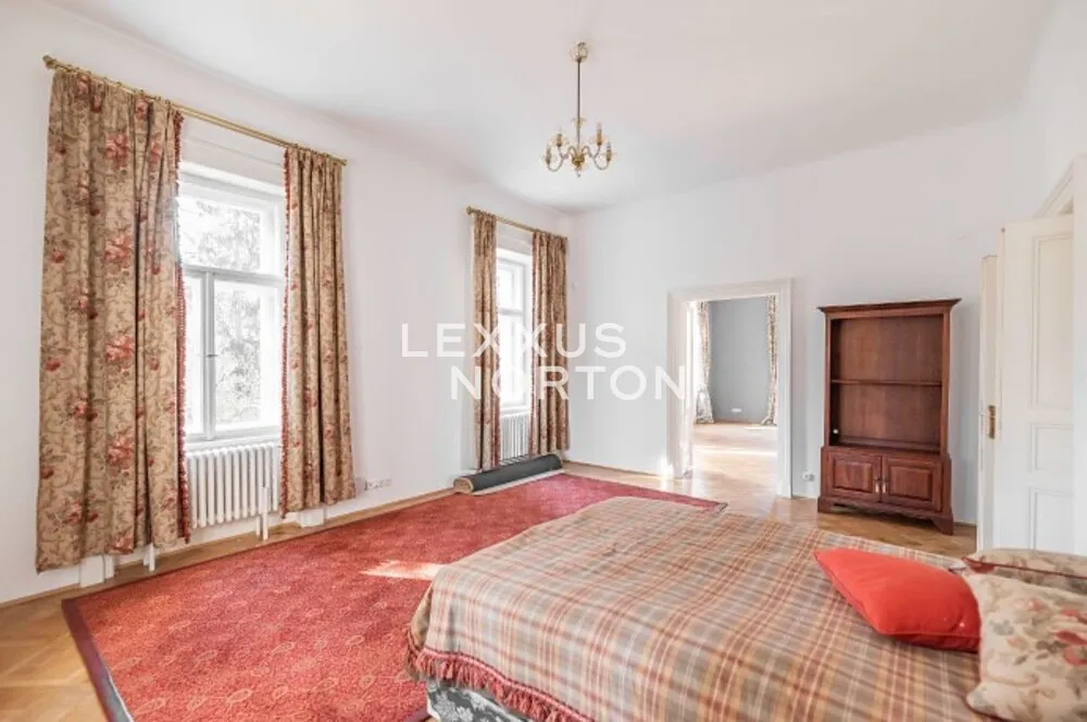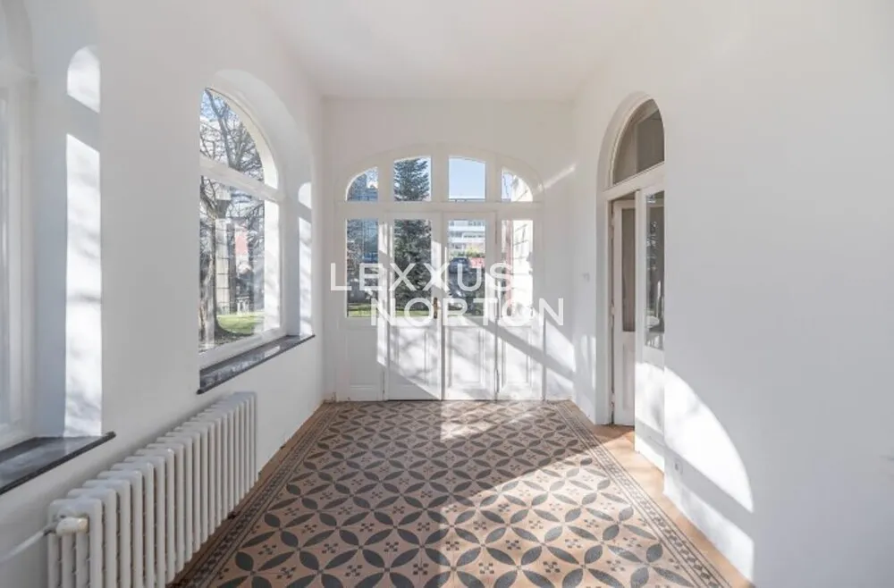 Citlivě zrekonstruovaná vila k pronájmu s důrazem na zachování původních architektonických prvků je obklopena pečlivě udržovanou zahradou s tenisovým kurtem, kašnou a altánkem. Vstupní patro nabízí halu s původním schodištěm, rozlehlý obývací pokoj s krbem se vstupem do prostorné pracovny, reprezentativní jídelny s plně vybaveným kuchyňským koutem a do zimní zahrady. Zbylá podlaží disponují celkem 7 ložnicemi, 5 koupelnami a dalšími 2 kuchyněmi. V suterénu se nachází velký bazén, sauna, relaxační a technická místnost. Možnost parkování v kryté garáži disponující 2 parkovacími místy či na pozemku. Součástí vybavení nemovitosti je alarm, domácí vrátný a bezpečnostní systém.