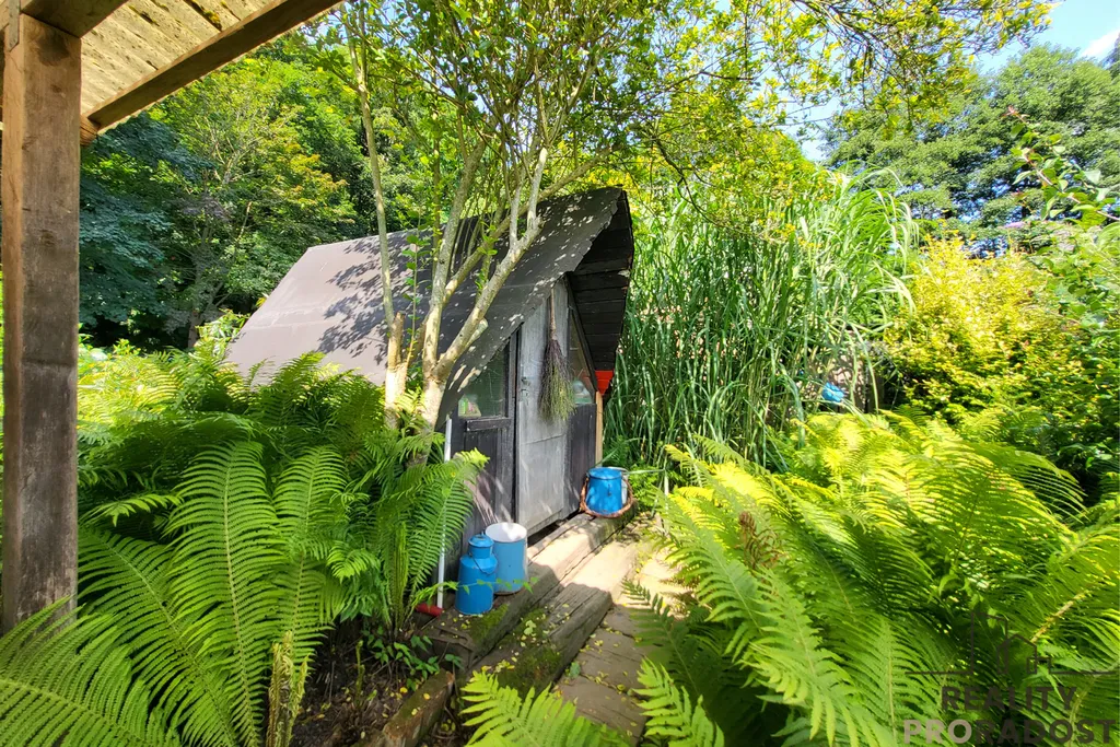 K dispozici je skleník, chatka se skladem nářadí, barely na vodu a rozvod vody po celé zahradě – buď ze studny, nebo z řeky. Zavedena je i elektřina. Příjezd je možný až k pozemku, parkování přímo před zahradou.
