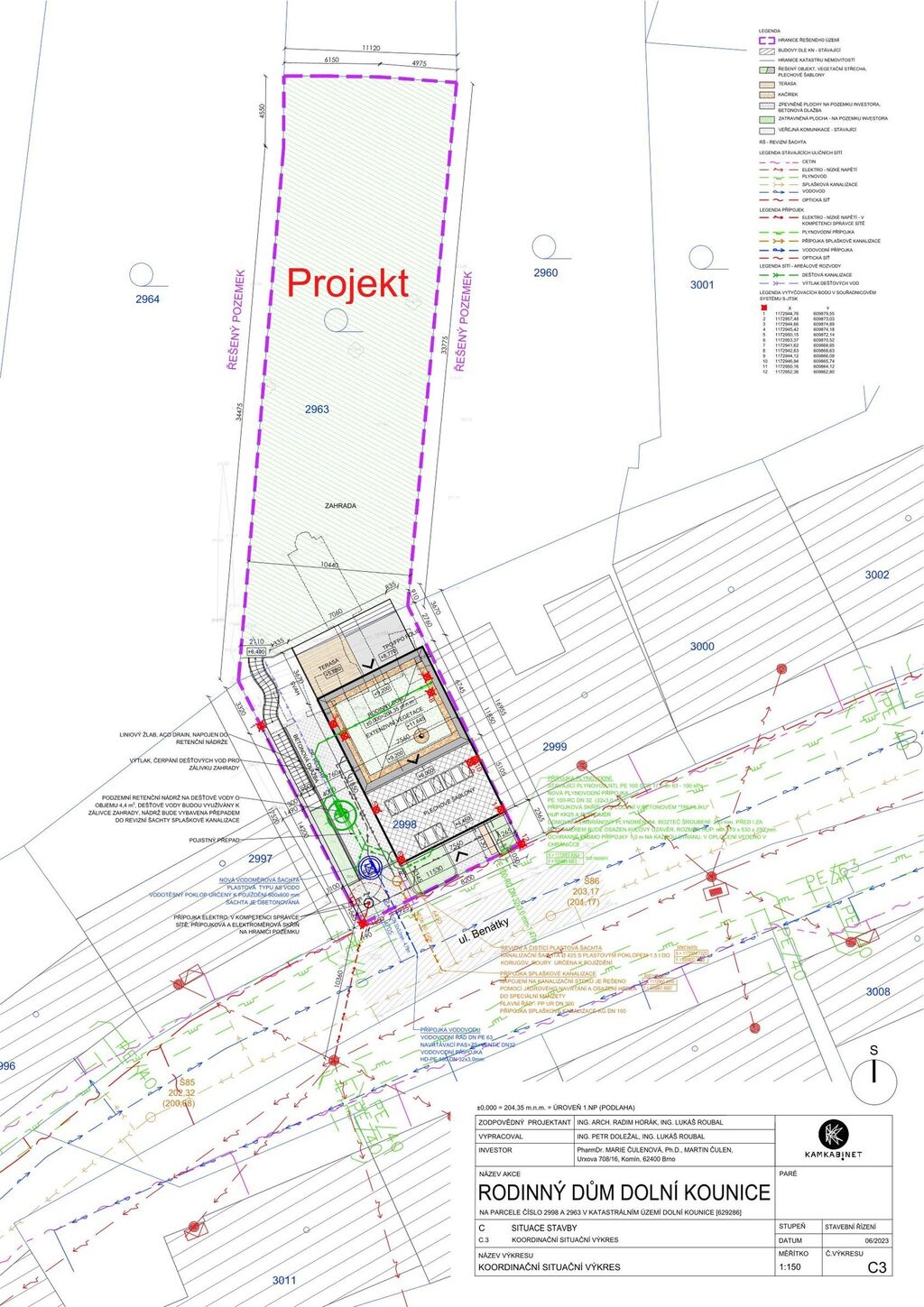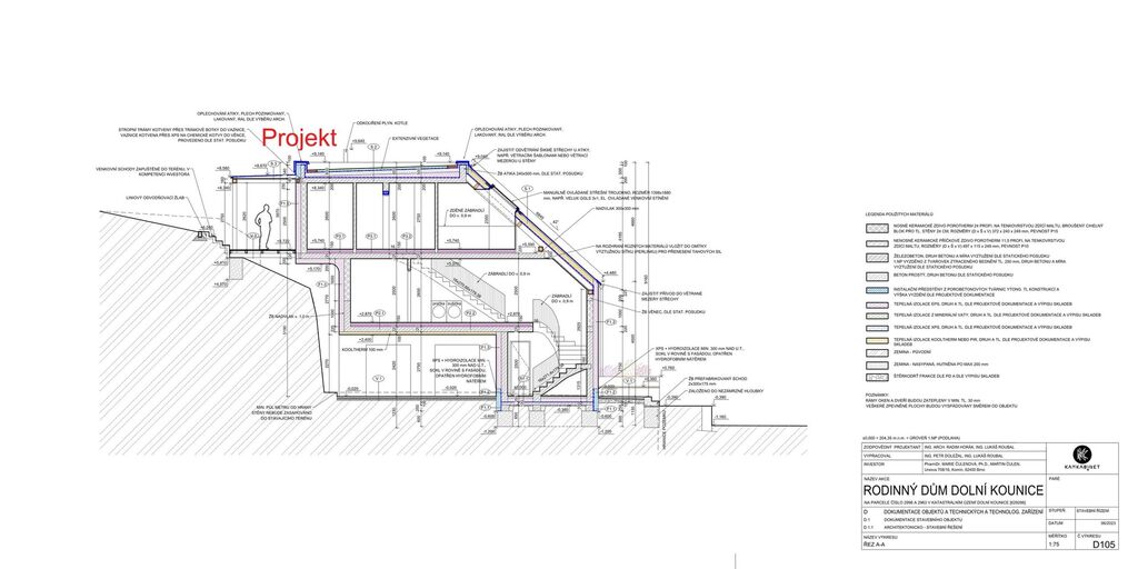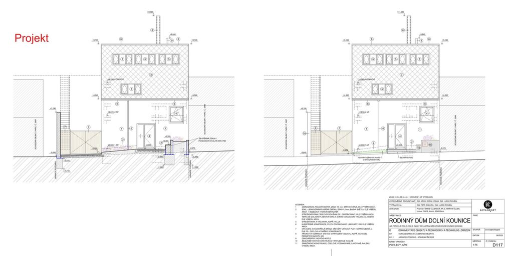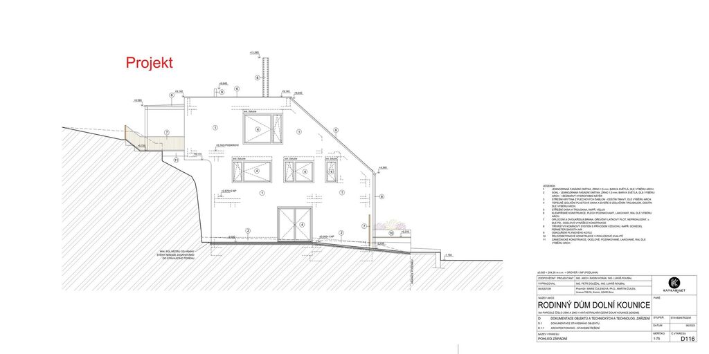 Nabízíme k prodeji atraktivní stavební pozemek s vydaným stavebním povolením a projektem domu, který má důmyslně promyšlené architektonické řešení, a navíc v žádané lokalitě s výhledem na malebné okolí Dolních Kounic. Projekt je koncipován jako dvoupodlažní stavba s podkrovím a navazující terasou, navržený dům tímto umožnil propojit 2 úrovně terénu, terasa umístěna při podkroví umožňuje propojení interiéru s exteriérem zahrady a nabízí dechberoucí výhled do krajiny. Architektonické řešení však umožňuje i alternativní varianty – dům lze realizovat jako čistě přízemní, nebo s plnohodnotným podkrovím a třeba i vikýřem, případně upravit dle investičního záměru například na tři samostatné bytové jednotky navíc s ateliérem. Samotná zastavěná plocha má 202 m2, navazující zahrada pak úctyhodných 1 647 m2, ta je situovaná na slunném jižním svahu je příjemně členěná, osázená mladými stromy a doplněná o stávající mobilní domek, který může sloužit jako zázemí pro hosty nebo zahradní atelier. Součástí pozemku je rovněž 1 větší klenbový sklep s původním charakterem, který dodává místu autentickou atmosféru a další funkční využití z přízemí propojené s domem, dále pak další 3 menší sklípky jakožto úložné prostory.