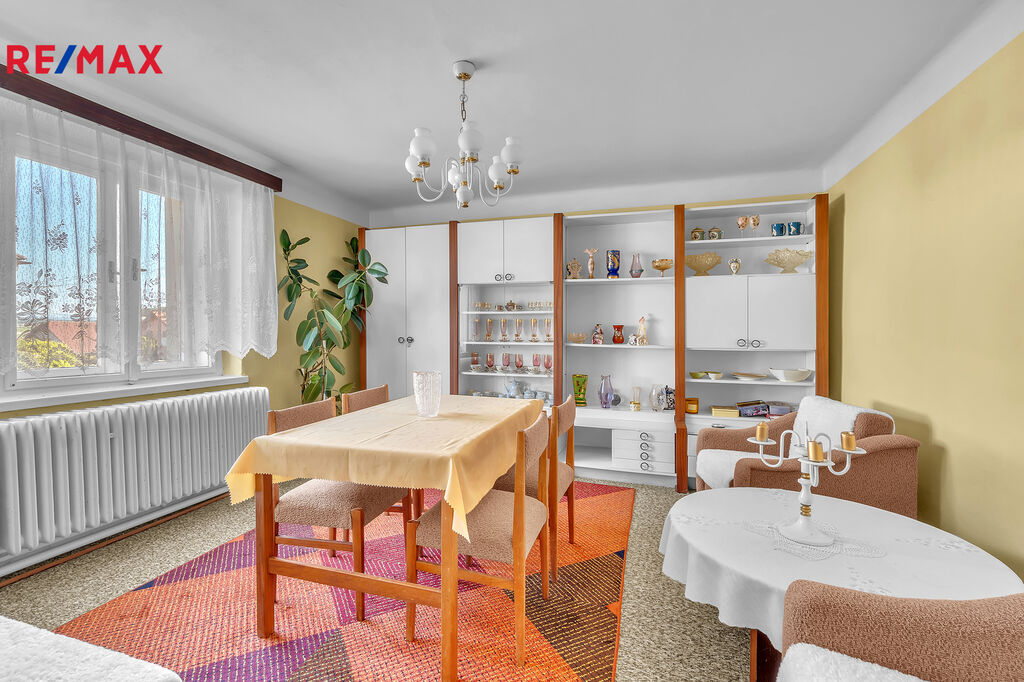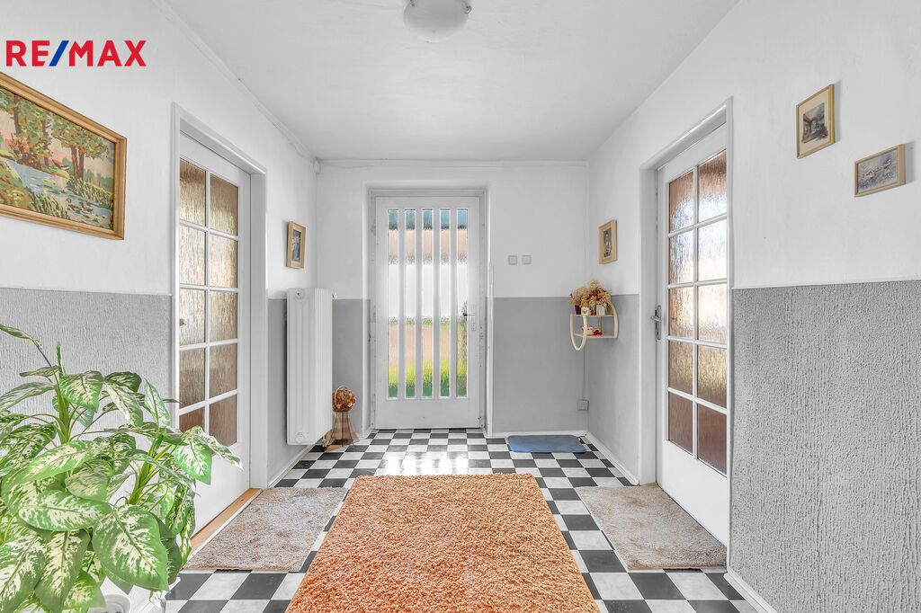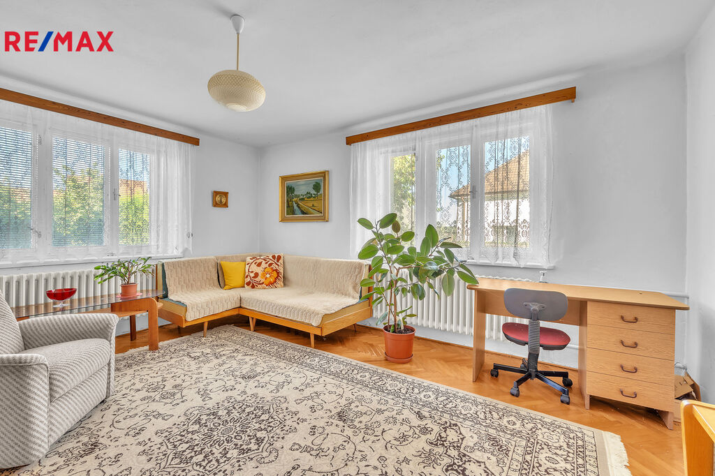 Zděný dům nabízí 4 pokoje, které nabízejí mnohostranné možnosti využití (obývací pokoj/ložnice/dětský pokoj). Dům je jednopodlažní, je částečně podsklepen a půdním prostorem. Valbová střecha s krytinou s eternitových šablon. Součásti domu je prostorná garáž (34,70 m2). Svislé konstrukce z plných cihel, stropní konstrukce betonová.