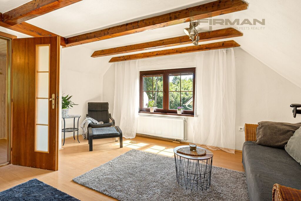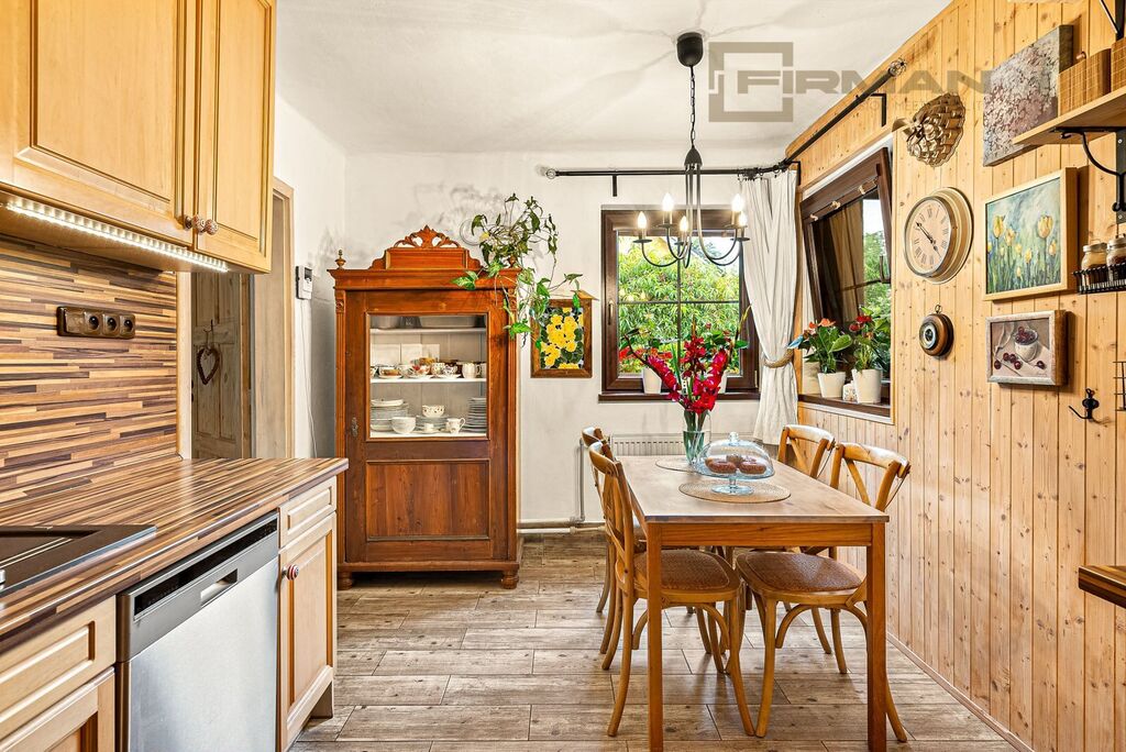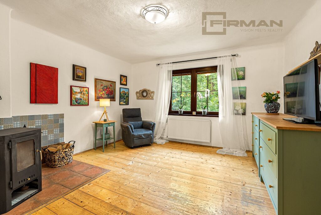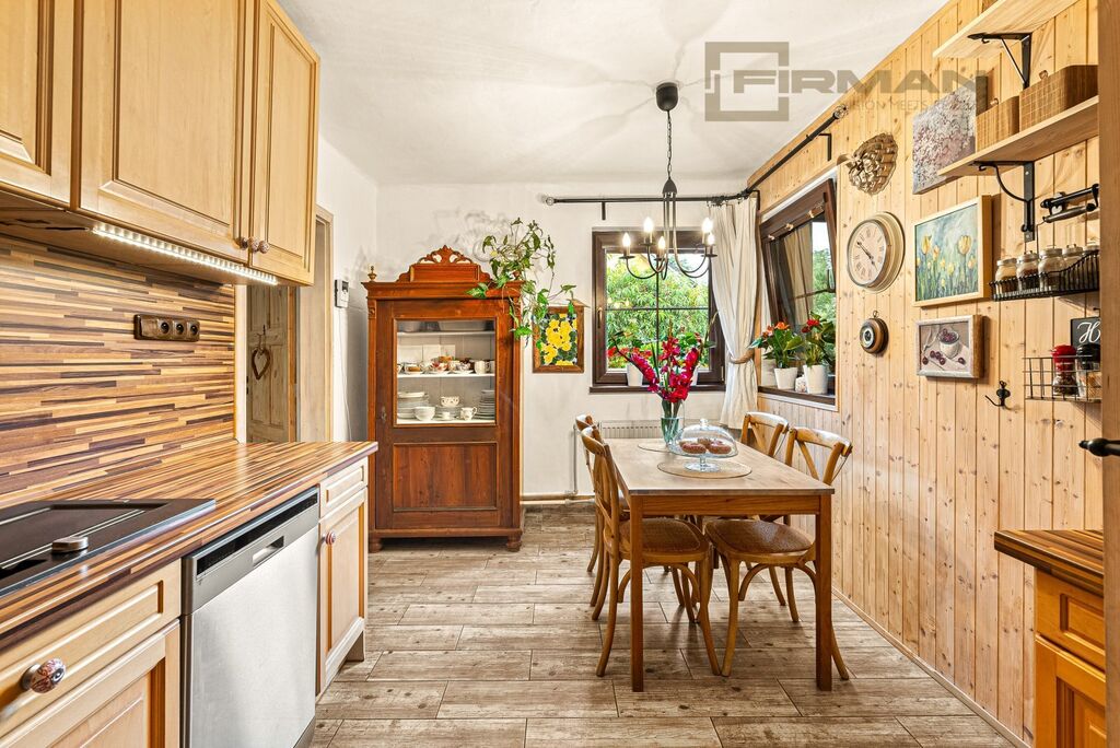 O tento dům bylo s láskou pečováno, přes 30 let v něm žila jediná rodina. V přízemí najdete kuchyni, útulný pokoj s krbem, ložnici, koupelnu, samostatné wc a vstup do sklepa. Horní patro nabízí jeden samostatný pokoj a dva spojené, kde jeden byl nyní používán jako horní kuchyňka, ale jednoduše ho lze opět změnit na pokoj, ložnici nebo pracovnu.