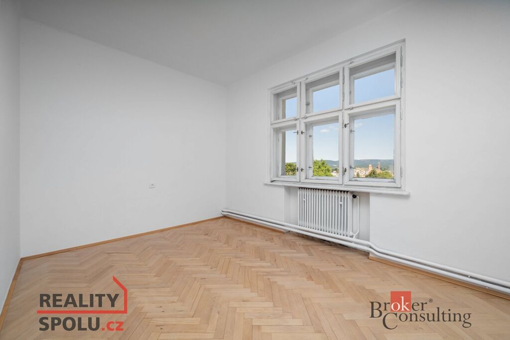 Interiér si uchovává původní kouzlo – dřevěná špaletová okna a parketové podlahy, které dodávají bytu eleganci. Součástí užívání v domě jsou také půdní prostory (o velikosti 28 m2, které se dají využít jako zázemí pro pobyt na střešní terase) a sklepní prostory o velikosti 22 m2.