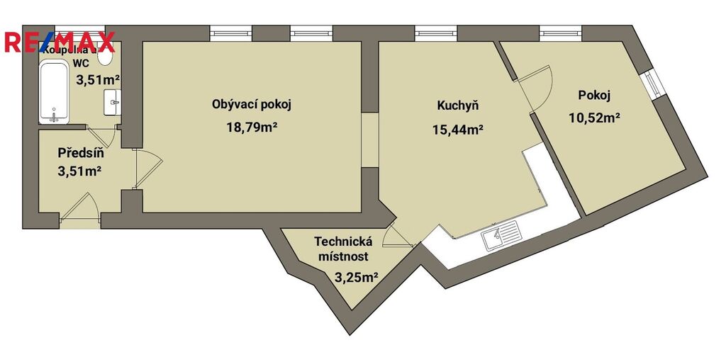 Nabízíme pronájem přízemního bytu 2+1, 55 m2 v cihlovém domě na Hodolanské ulici v Olomouci volný od 1.9.2025. Do bytu se vstupuje přes chodbičku, přímo naproti je koupelna s vanou a toaletou. Vpravo se nachází obývací pokoj (19 m2) na který navazuje prostorná kuchyně (15,5 m2) s barovým pultem a v zadní části je ložnice (10,5 m2). Byt je vhodný pro studenty nebo dvě pracující osoby.