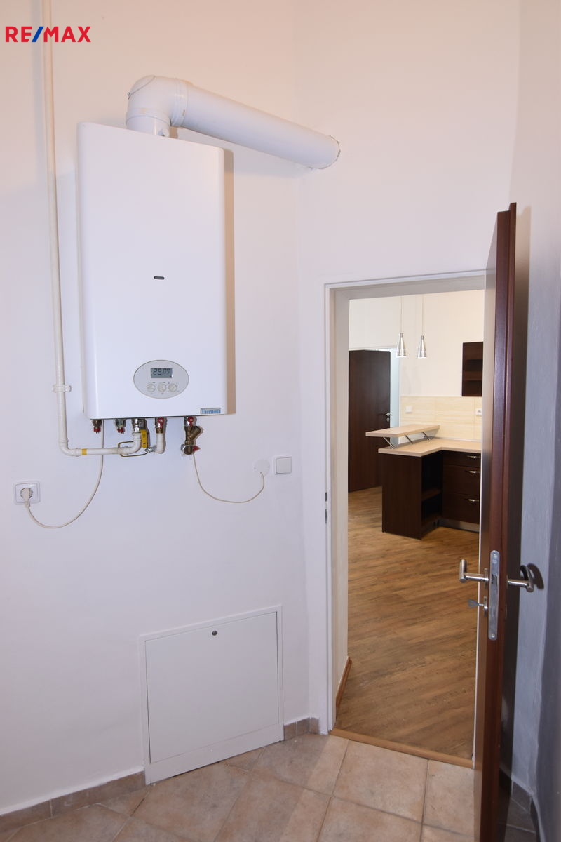 Podlahové krytiny jsou vinyl a keramika. Okna plastová se žaluziemi. Bytu náleží komora s přípojkou na pračku a plynovým kotlem, nabízí se bez vybavení (sušička na prádlo Whirlpool ano) s možností využití dvorku a je volný ihned. Měsíční zálohy: na vodu 350 Kč za osobu, elektřinu a plyn si zájemce hlásí na sebe. Zájemce hradí jistotu ve výši 15.000 Kč a provizi RK ve výši jednoho nájmu + DPH.