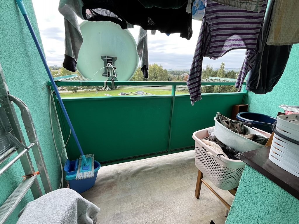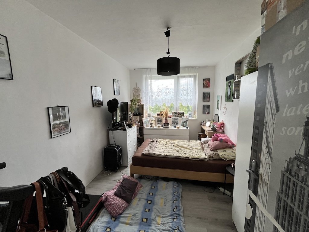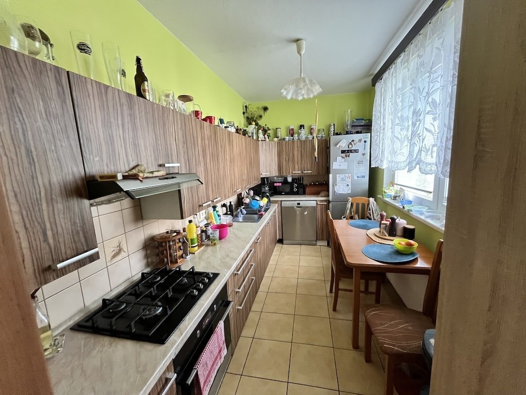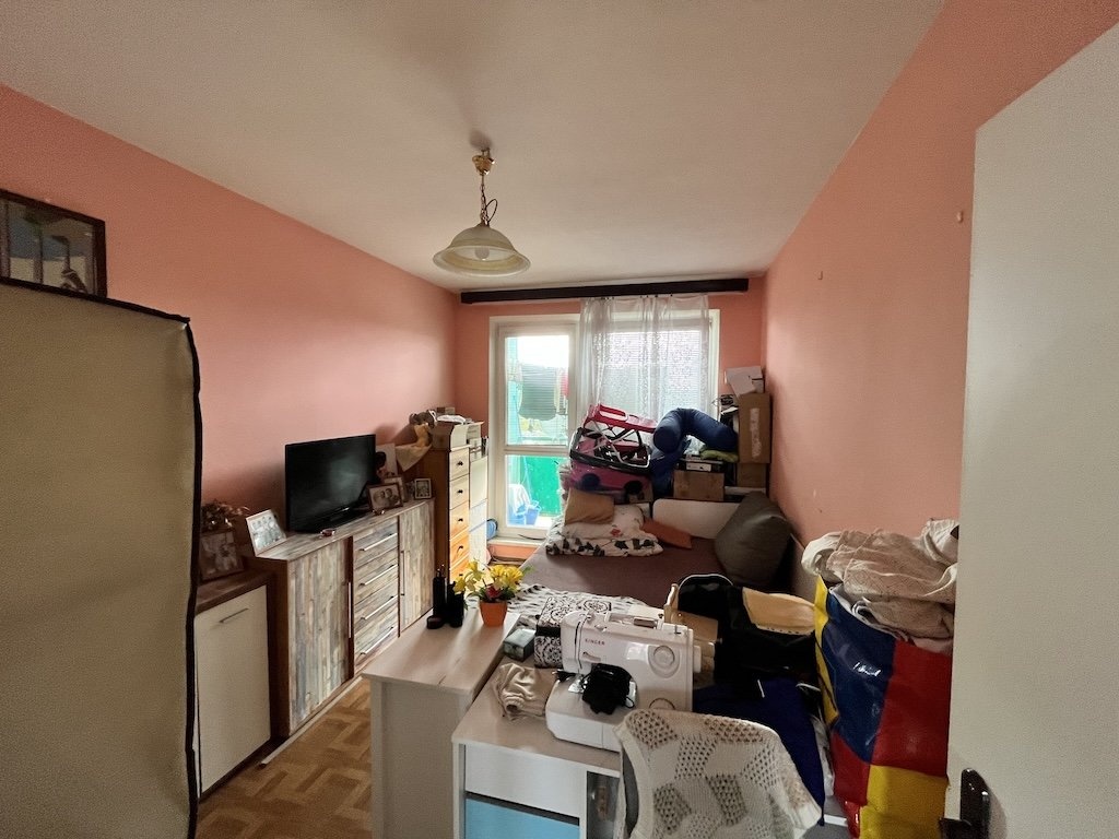 Jedná se o byt 3+1 ve 4.NP. V bytě se nachází: chodba (7,46 m2), 3 x pokoj (12,14 m2; 20,95 m2; 12,18 m2), kuchyně (8,84 m2), koupelna (3,85 m2), WC (1,88 m2), lodžie nezasklená (2,58 m2) a sklep (4,20 m2). Podlahové plochy v bytě PVC, plovoucí a keramická dlažba, okna jsou plastová zdvojená. Vytápění je centrální s radiátory s dálkovým zdrojem, zdroj teplé vody je centrální. Sociální zařízení tvoří umyvadlo, sprchový kout, splachovací WC v repasovaném jádře z SDK. Kuchyňské vybavení tvoří linka, dřez, sporák PB a digestoř.