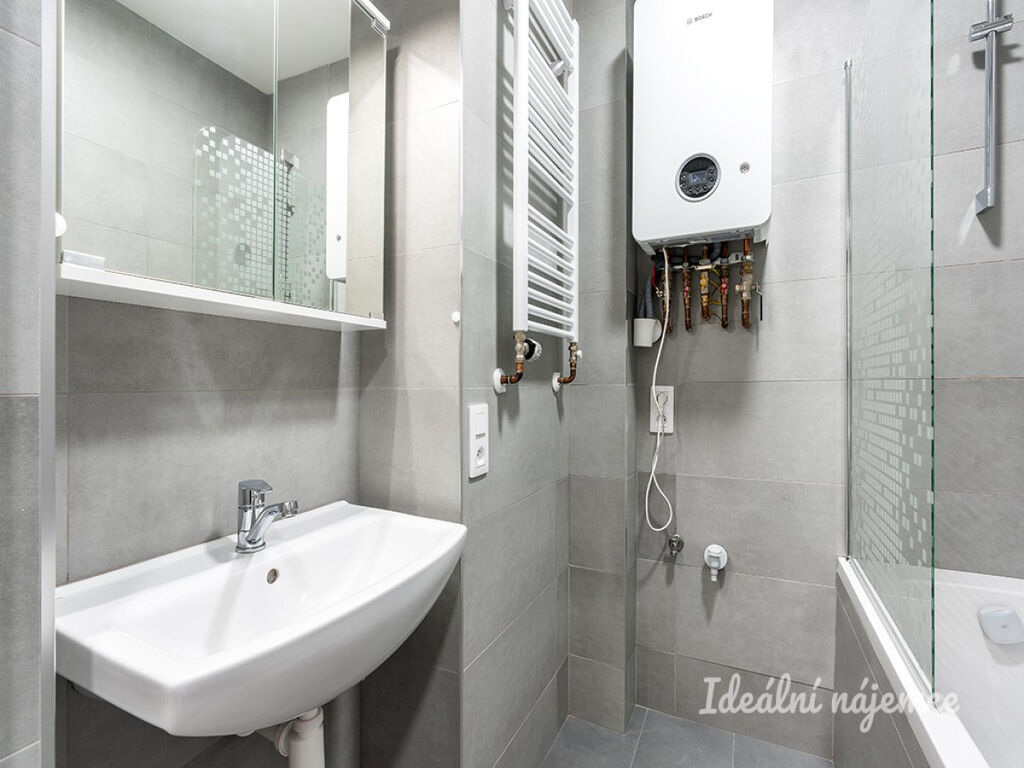 Byt se nabízí částečně vybavený. Kuchyně disponuje lednicí, myčkou, elektrickou troubou, varnou deskou, a digestoří. Dále si byt můžete zařídit plně dle svých představ a potřeb. Koupelna je zařízena sprchovým koutem a umyvadlem. Toaleta je umístěna samostatně.