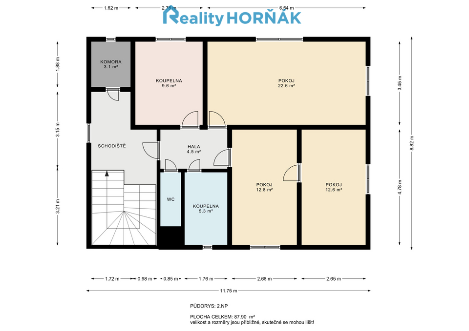 Skutečný stav nemovitosti si nejlépe prohlédnete ve virtuální prohlídce (3D sken nemovitosti – Matterport), která je součástí inzerce. Po zaškrtnutí ikony červeného křesílka ve spodním menu virtuální prohlídky se Vám nemovitost zobrazí bez vybavení a zařízení, po zaškrtnutí ikony měřítka se Vám zobrazí rozměry místností.