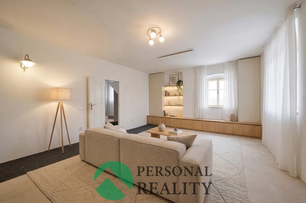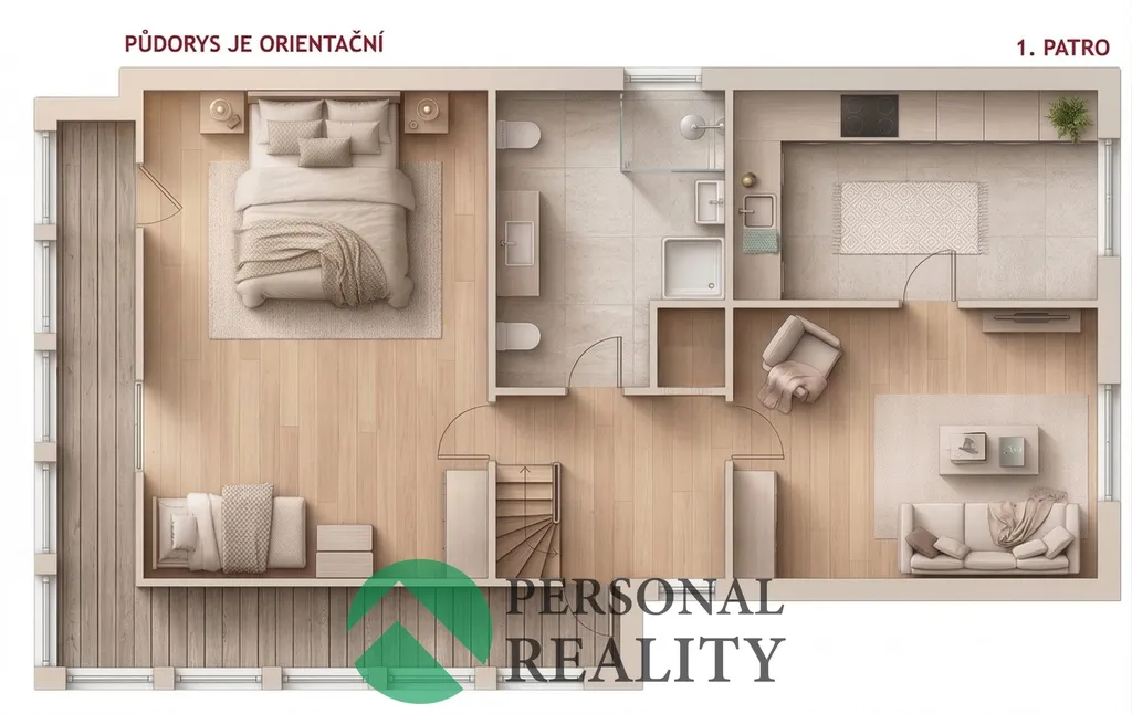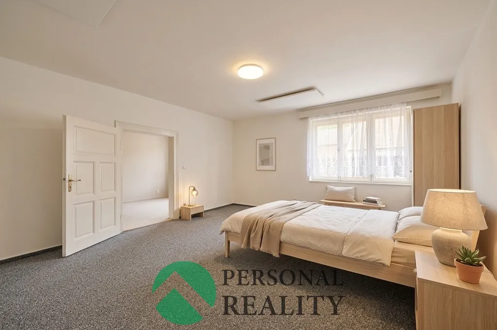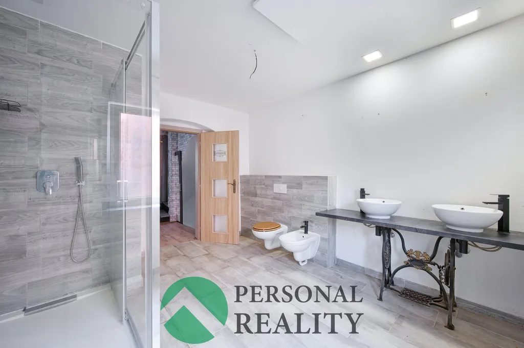 V patře je k dispozici prostorná bytová jednotka 2+1 o velikosti 84 m², která disponuje velkou ložnicí, obývacím pokojem, kuchyní a koupelnou. Na půdě již byla započata výstavba jednoho pokoje a prostor nabízí možnost dalšího rozšíření dle potřeb nového majitele.