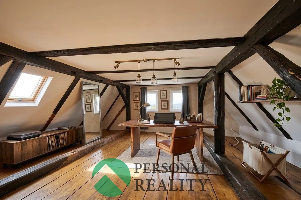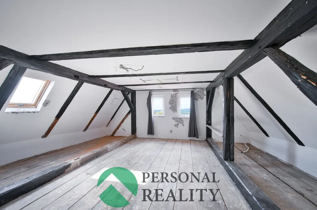 Nemovitost zahrnuje dvě samostatné bytové jednotky, půdní prostor s potenciálem další vestavby a zahradu, na kterou navazuje stavební parcela.
