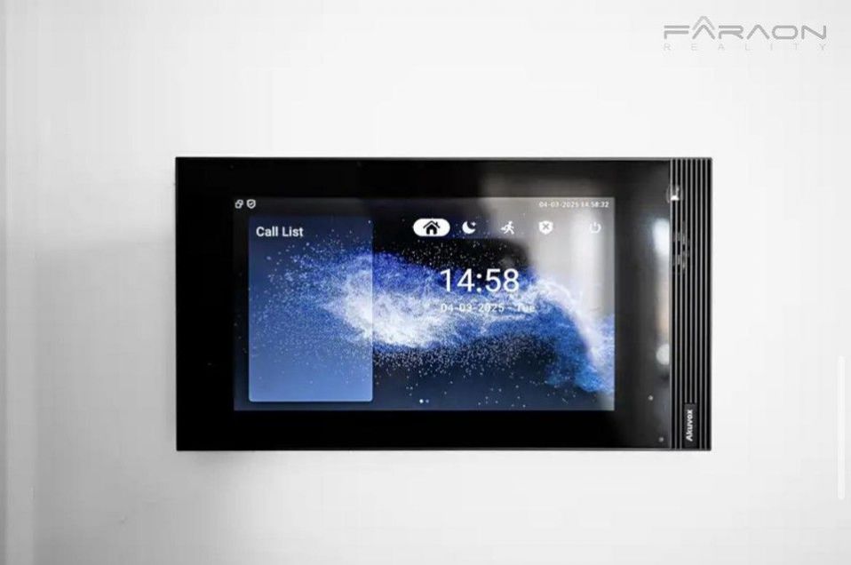 Vybavení bytu tvoří dřevěná izolační trojskla HS portály, dřevěná podlaha v obývacím pokoji a ložnici a velkoformátové dlaždice na chodbě a v koupelně.