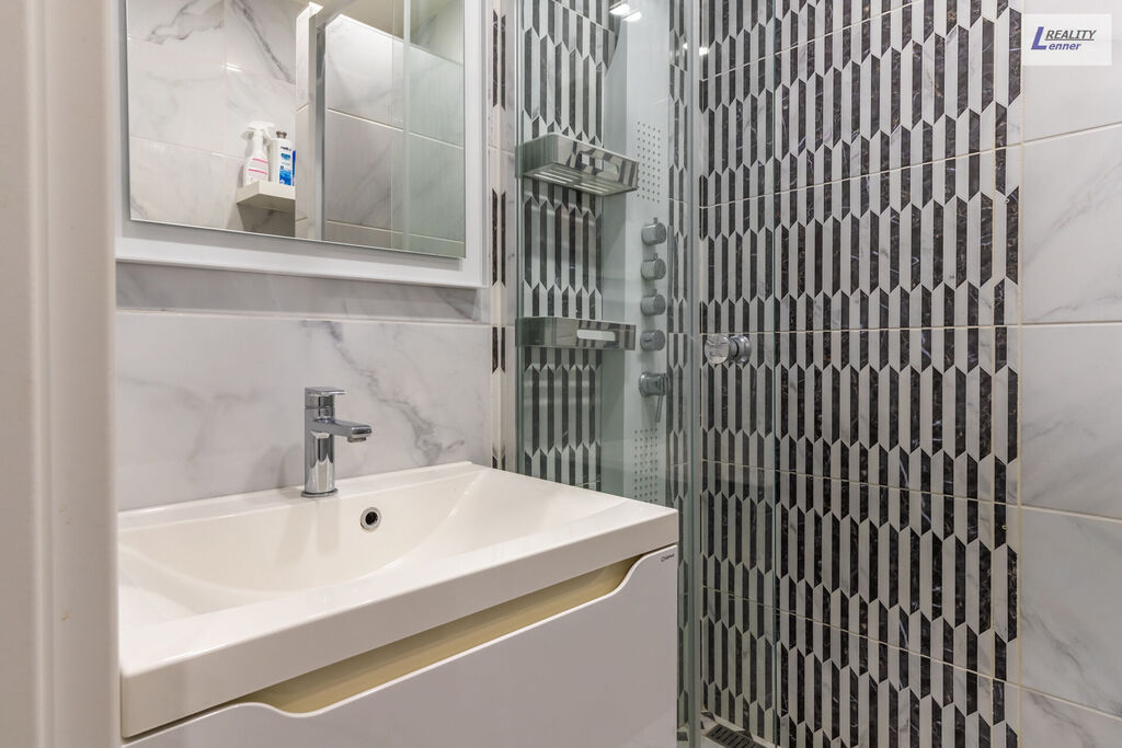 V bytě po nákladné a velmi zdařilé rekonstrukci jsou: plastová okna vč. okenních rolet, kvalitní kuch. linka vč. spotřebičů (el. horkovzdušná trouba, mikrovlnná trouba, digestoř, myčka, indukční varná deska, vestavná kombinovaná chladnička s mrazákem), sádrokartonové podhledy, v bytě převážně úsporné LED osvětlení, podlahy v celém bytě velkoformátová luxusní dlažba, rozvody el. v mědi, novější jističe, zděné jádro, v koupelně a na WC luxusní designové obklady, voda a dopady v plastu, interiérové dveře vč. zárubní, vytápění zajišťují infrapanely, možnost internetu a kabelové TV.