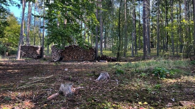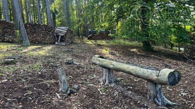 Část pokáceného dřeva je nařezána na 1m dlouhé kusy a je složena na horní rovinaté části pozemku. Dotace na vysázení lesa nebyla doposud čerpána, což je velká výhoda.