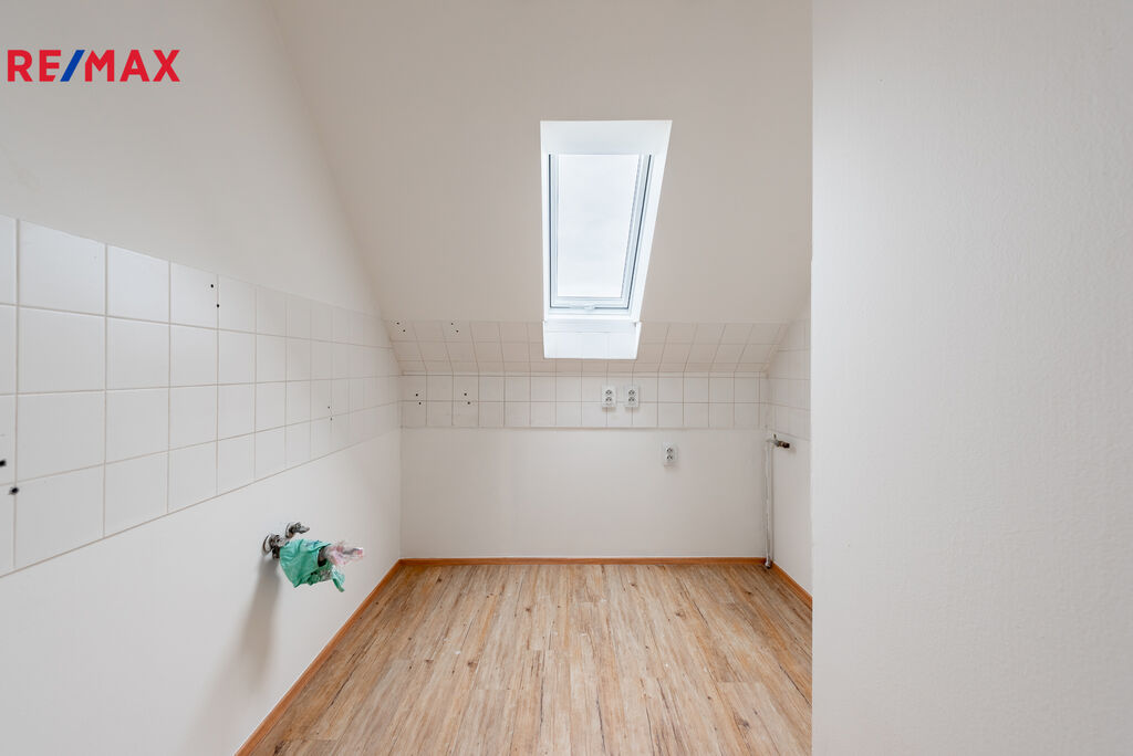 V 1. patře se nachází obytný prostor o dispozici 2+1 a rozloze 66 m², z čehož 56,6 m² tvoří obytná plocha a zbylých 9,4 m² technické zázemí. K dispozici je malá kuchyň vybavena kuchyňskou linkou s kompletním vybavením kvalitními spotřebiči, koupelna s toaletou, sprchovým koutem a oknem.