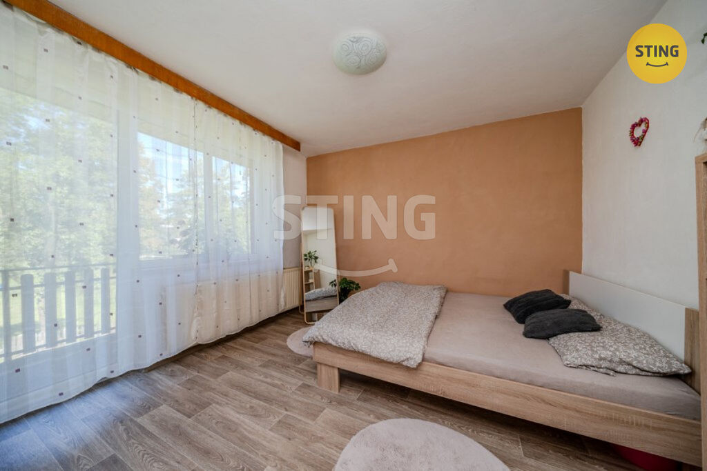 Nabízíme exkluzivně zděný RD po částečné rekonstrukci v malebné obci pod Oderskými vrchy, ve Vlkovicích u Fulneku. Tento zděný dům je koncipován jako samostatná část dvojdomku s vlastním vchodem, vlastním číslem popisným a vlastní samostatnou zahradou. V 1.NP se nachází vstupní veranda s chodbou a schodištěm do patra, komora, kotelna, dvě samostatné garáže a zastřešená terasa do dvora. Ve 2.NP je nad schodištěm menší hala s úložným prostorem, chodba, koupelna, WC, 3 ložnice a obývací pokoj propojen s kuchyňským koutem. Ze dvou pokojů lze vystoupit na prostorný balkón. Dům prošel před léty postupnou rekonstrukcí kdy byla vyměněná okna za plastová, nové vnitřní dveře ve 2.NP, 5 let stará kuchyňská linka, kotel na tuhá paliva je vyměněn za tepelné čerpadlo voda - vzduch zn. Wiessmann které zajišťuje vedle vytápění i ohřev teplé vody. El. je v původním stavu, rozvody vody a odpady jsou v plastu. Podlahy železobetonové konstrukce s dřevěnou krytinou, s linem, tkanou textilií a keramickou dlažbou. Pultová střecha domu je oplechovaná a pravidelně ošetřena nátěrem, dům je částečně opatřen zateplením a brizolitová omítka má nový nátěr. Na zahradě stojí skleník, k domu je napojena dřevěná zastřešená pergola pro zpříjemnění odpočinku. Voda je do domu napojena z dálkového vodovodu, voda k WC a zalévání zahrady je zajištěna ze studny na vlastním pozemku. Odpady jsou svedeny do vlastní čističky s odvodem upravené vody do místní vodoteče. PENB - energetický štítek domu se v současné době zpracovává, proto systém uvádí nejhorší třídu "G". Pro bližší informace volejte makléři. Do konce prosince 2025 nabízíme prostřednictvím našeho partnera úrokové sazby od 4,29 % p.a. Více informací Vám sdělí náš specialista na prohlídce.
