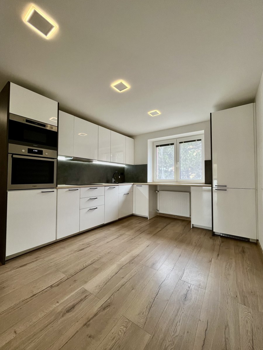Byt se nabízí vybavený dle fotografií. Kuchyň je moderně zařízená a disponuje vestavěnou lednicí s mrazákem, myčkou, troubou, mikrovlnkou a pračkou. V ložnici najdeme postelový rám a velkou šatní skříň. Koupelna je vybavena sprchovým koutem, umyvadlem a toaletou.