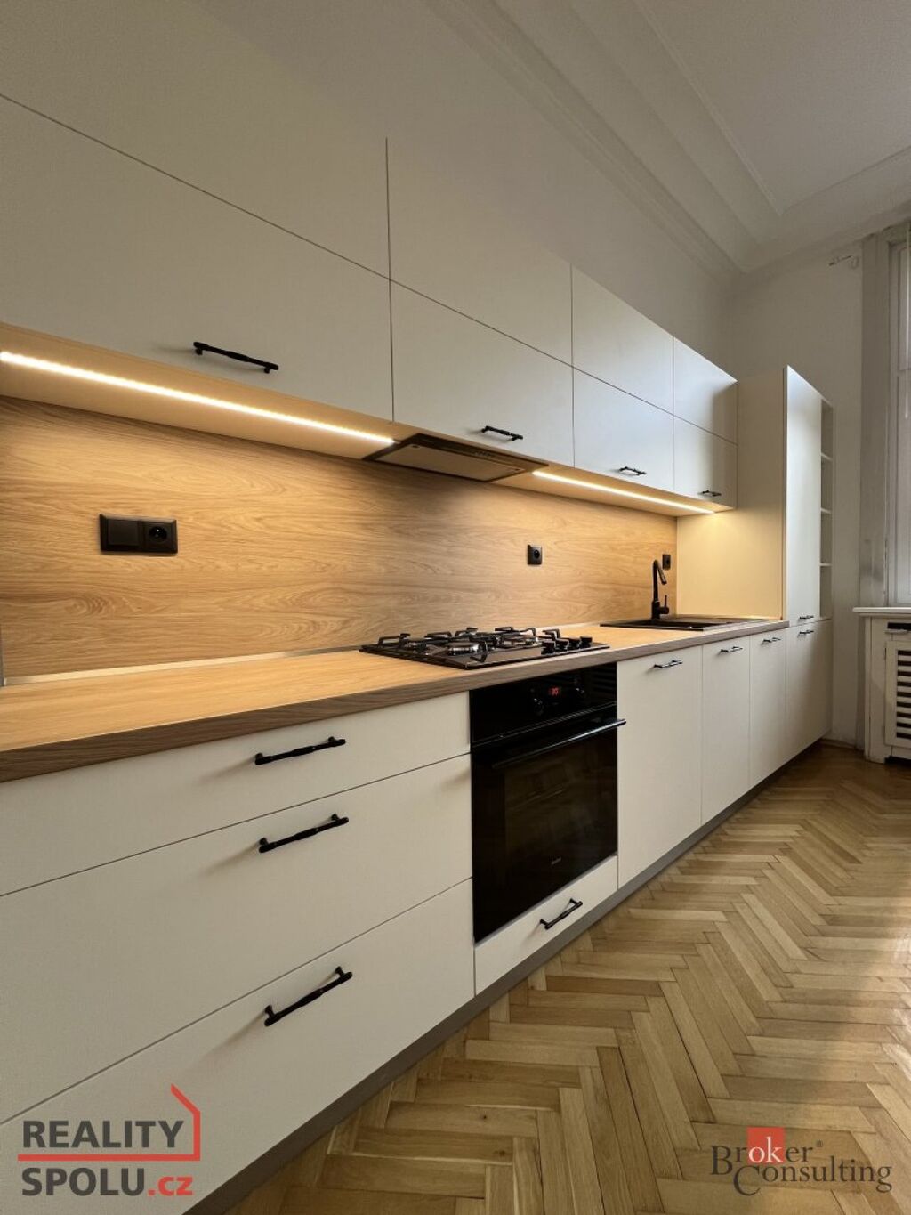 Dominantou bytu jsou vysoké stropy, které prostoru dodávají jedinečný charakter a vzdušnost. V bytě jsou instalována nová okna, rekonstruovaná koupelna, nová kuchyňe a toaleta. Díky tomu nájemník získá moderní a pohodlné bydlení v atraktivní lokalitě. K bytu je možné za poplatek využít parkovací místo ve dvoře.