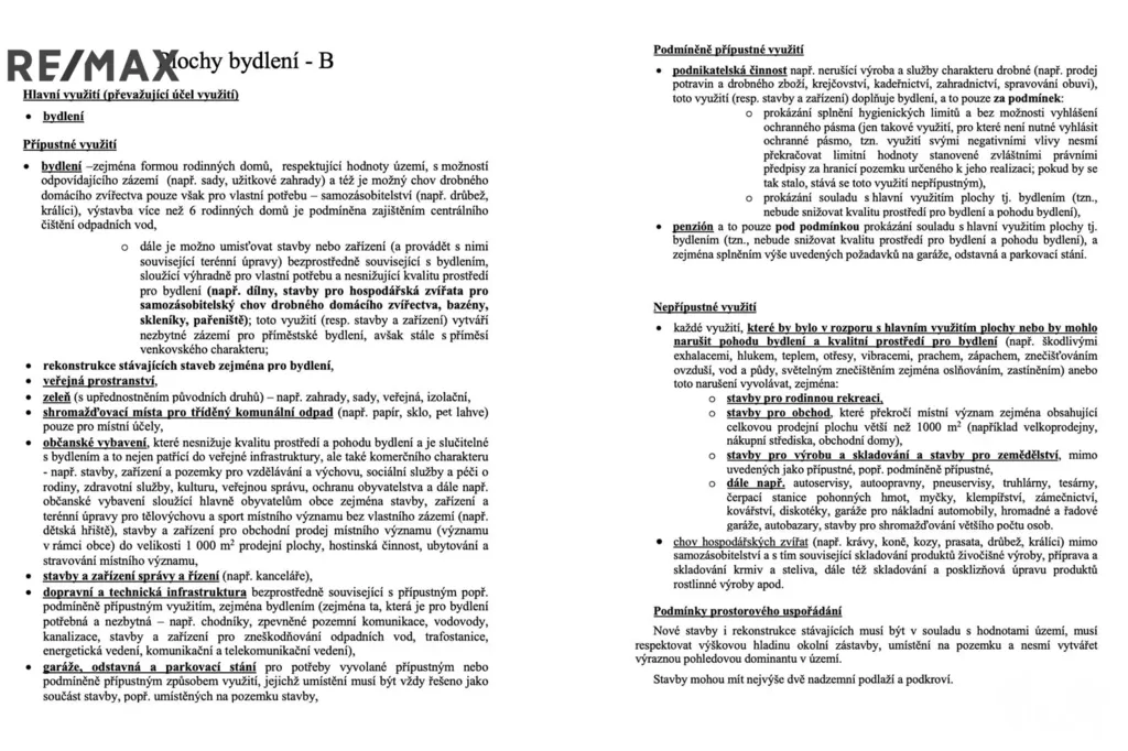 • Územní plán: plocha B – plochy bydlení (možnost výstavby řady rodinných domů, venkovský charakter, nebo bytových domů zapadajících do reliéfu obce)