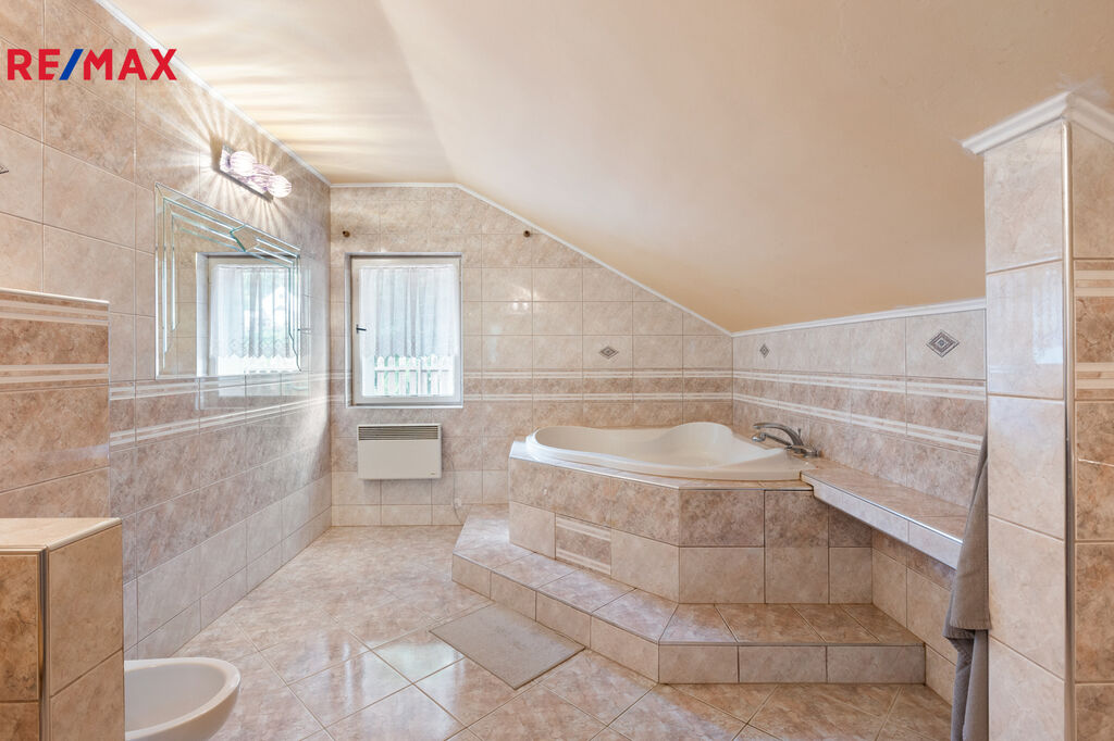 -	2 koupelny s vanou, sprchou, umyvadly, WC a bidetem