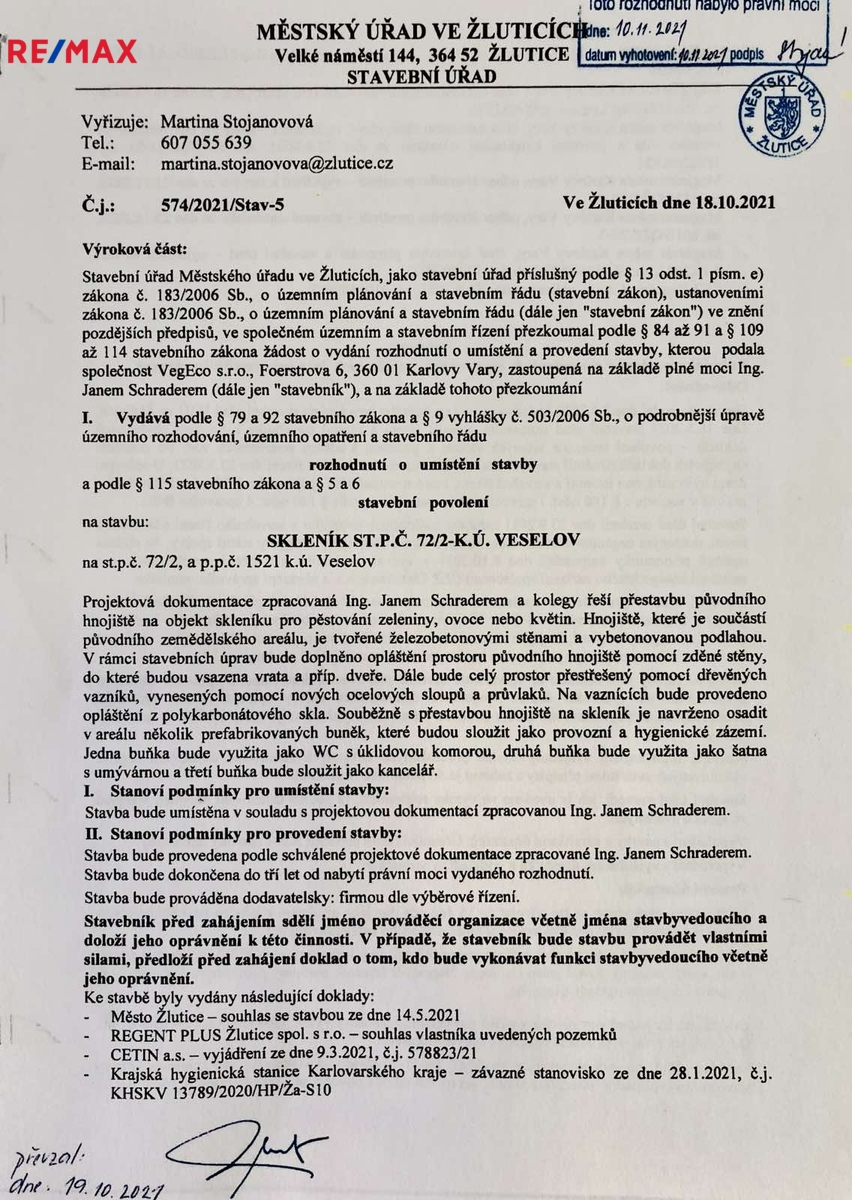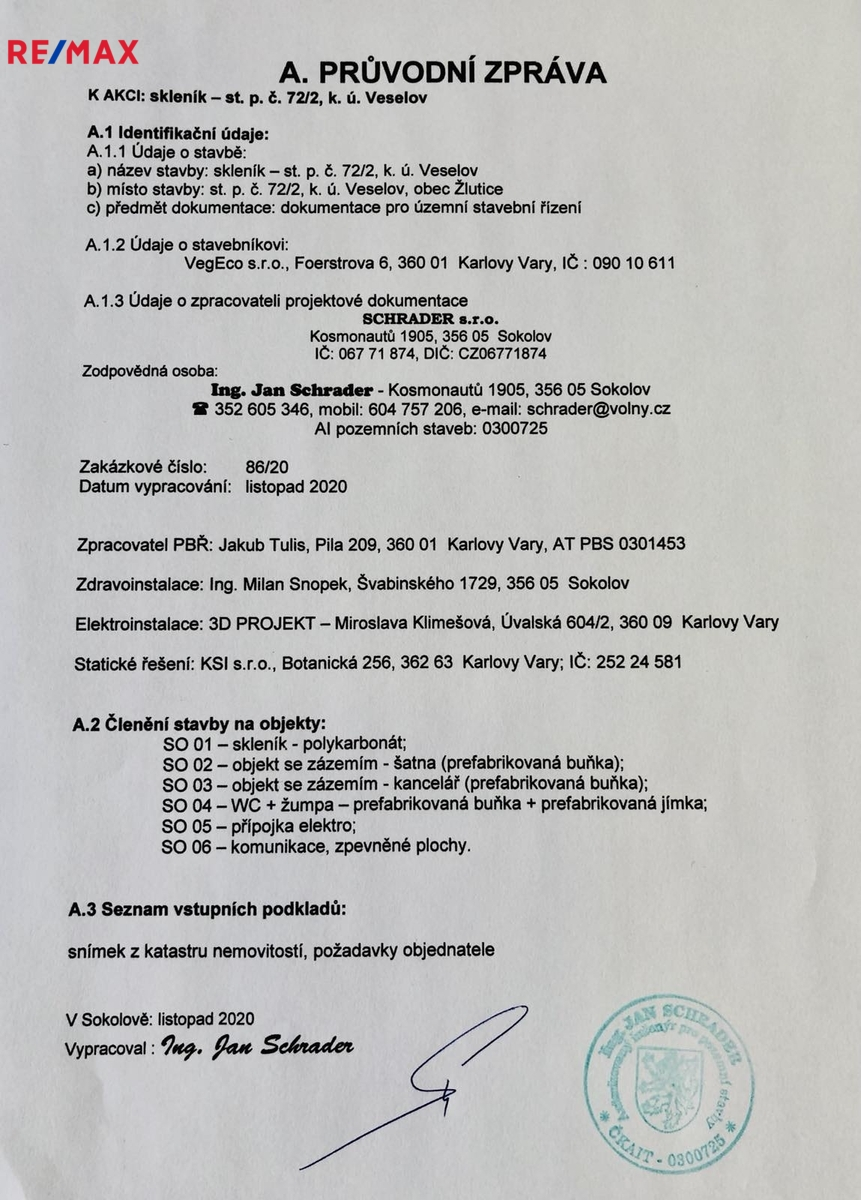 Je možné dodat i aktuální vypravovaný projekt včetně stavebního povolení, který zahrnuje: