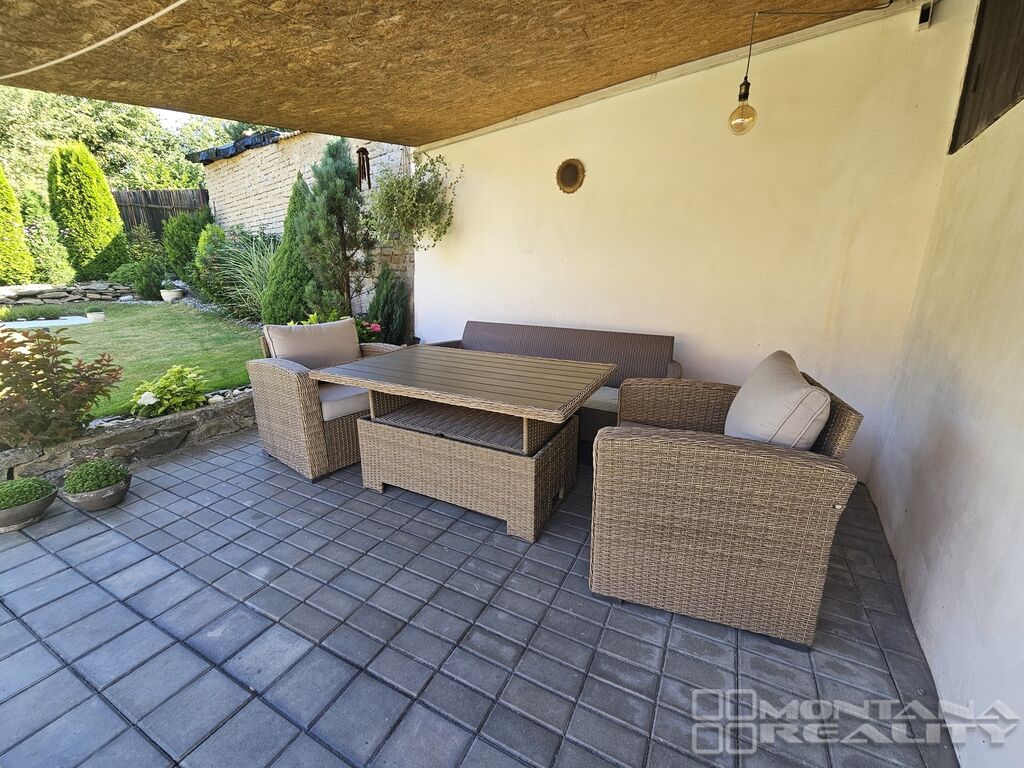 Průjezd domu navazuje na dvůr a zahradu. Na dvoře jsou dvě technické místnosti a pergola sloužící k posezení. Dále udržovaná zahrada, na které se nachází studna, zahradní domek se sklepem, udírna, dřevěná kůlna, skleník a spousta ovocných stromů.