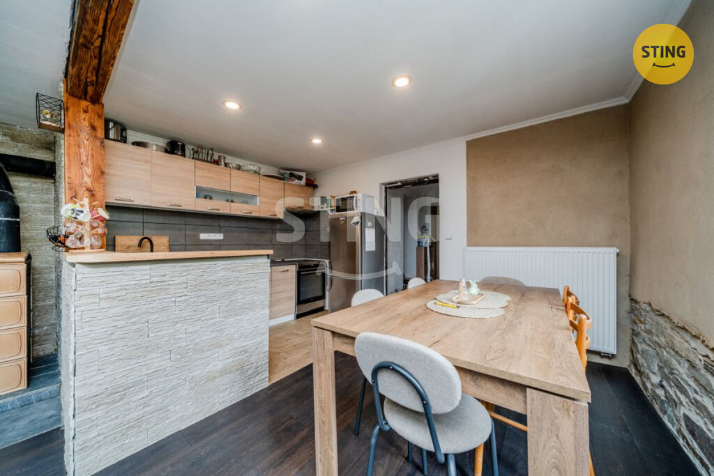 Dům má plastová okna ( dvojsklo ), dřevěné schodiště, možnost připojení na kanalizaci, kamenné základy jsou svázané statickou firmou, izolace zdiva - chemická injektáž v obytné části, stropy - dřevěné, klenbové, vnitřní štukové omítky.