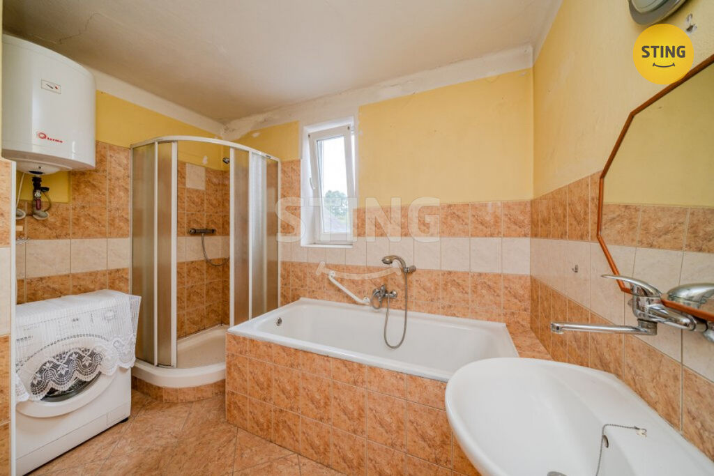 Součástí domu jsou chlévy, garáž, dílna, sklípek a prostorná půda.