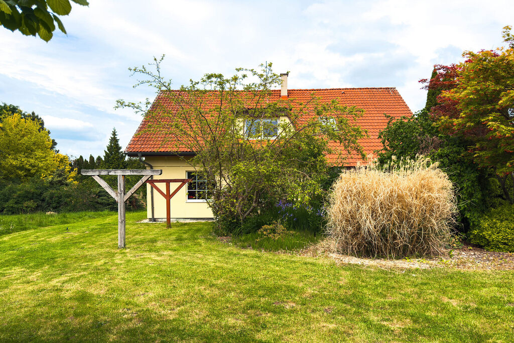 K tomu všemu dostatek parkovacích stání přímo u domu (včetně dvou krytých) a krásná, vzrostlá zahrada (pozemek má celkovou plochu 1549 m²). Ta vás potěší pohledem z domu a zároveň vytvoří dokonalou vizuální clonu od okolí. Jistě oceníte i krytou terasu, obklopenou zelení, kde si můžete vychutnat kávu nebo sklenku vína i za deštivého počasí. Pozemek je oplocen pouze ze dvou stran (příjezdová strana a boční, levá strana). Sousední pozemek je veden v Územním plánu jako stavební.