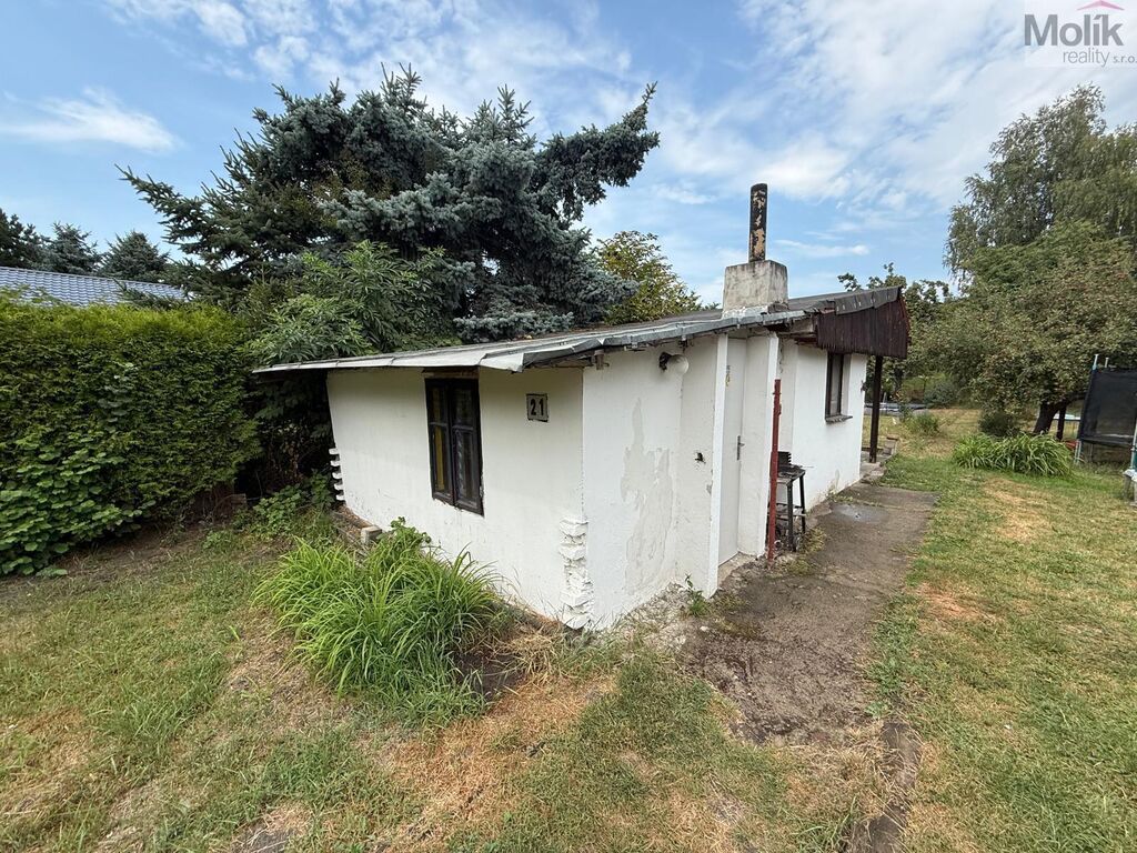 Na zahradě ve zděném domku je zavedena elektřina 220/380 V a k dispozici je celoročně voda.