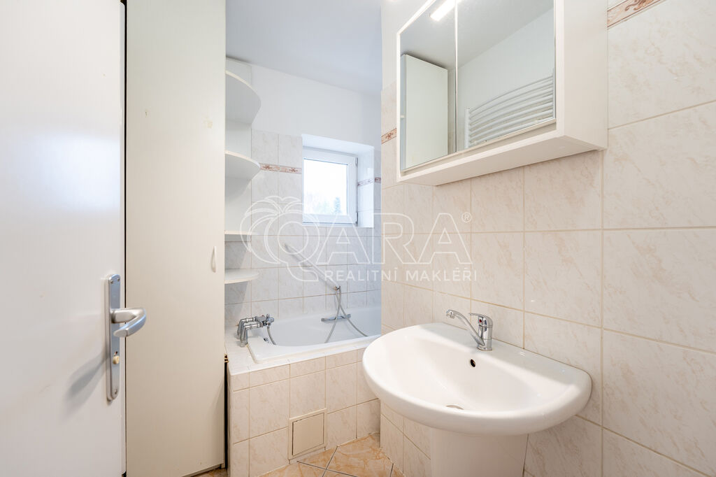Celková plocha bytu je 55 m² a nachází se v 2. NP zatepleného panelového domu s novými plastovými okny (výtah je samozřejmostí). Skládá se z předsíně o výměře 4,5 m², ze které je přístupná kuchyně o výměře 12,2 m². Je spojená s jídelnou a vybavena kuchyňskou linkou se spotřebiči (vestavná trouba, čtyřplotýnková varná deska, digestoř, lednice s mrazákem). Z předsíně je přístupný první pokoj o výměře 14 m², který byl dosud využíván jako obývací a je vzájemně průchozí s druhým pokojem o výměře 9,5 m², který disponuje zasklenou lodžií. Z předsíně je také přístupná koupelna, samostatné WC a komora, kde je přípojka na pračku a dostatek místa i na sušičku. K dispozici je také samostatný zděný sklep v 1. NP a společná kolárna/kočárkárna.