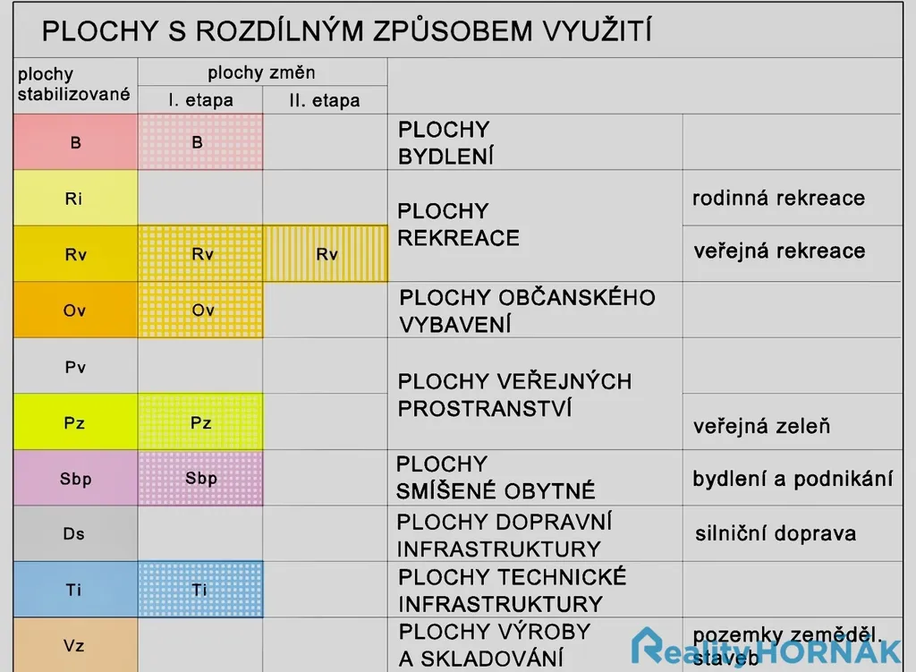 Územním plánem (ÚP) je parcela zařazena do kategorie B – plochy bydlení, s hlavním využitím k bydlení v rodinných domech (případně i se zázemím pro drobnou podnikatelskou činnost). Přímo na uvedené parcele ÚP připouští výstavbu až dvou rodinných domů, přičemž je na parcele přesně vymezena zastavitelná a nezastavitelná část – viz fotogalerie. Nová stavba zde musí respektovat měřítko, charakter a hladinu stávající zástavby – prostorové uspořádání domu s maximálně jedním nadzemním podlažím a obytným podkrovím.
