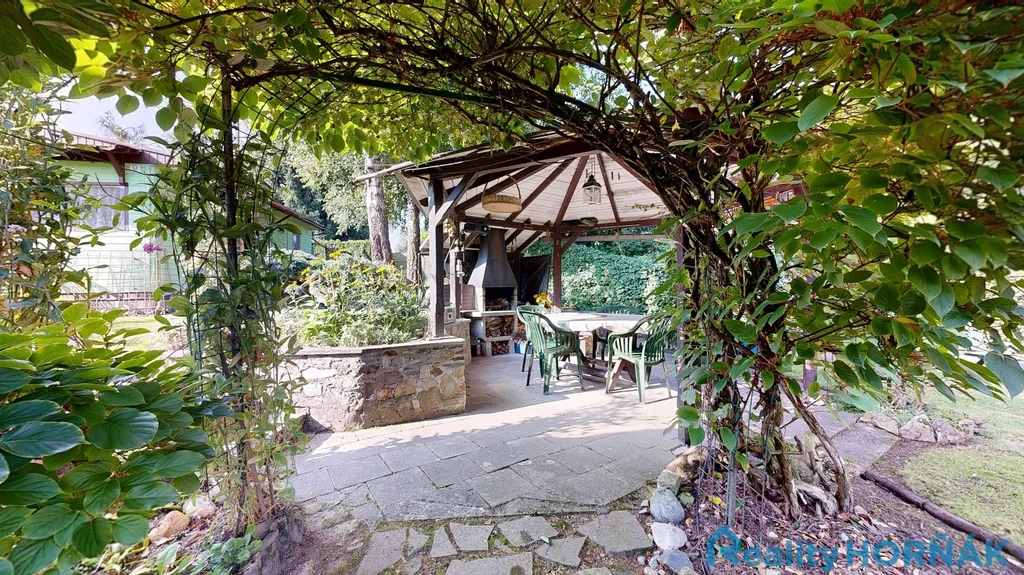 Parcela byla současnými majiteli po léta využívána rekreačně. Na parcelu byla umístěna mobilní buňka s přístavbou, sloužící jako chata. Dispozičně v ní najdeme dva pokoje, kuchyňku a spíž. V chatě není záchod, ani koupelna. Suchý záchod je umístěn na zahradě. Na parcele byla dále vybudována pergola s příjemným venkovní posezením, přístřešek pro auto, sklad zahradního nářadí a nábytku. Celá parcela je nyní pojednána jako rekreační zahrada s relaxační, ozdobnou, sadovou i pěstitelskou zónou. Najdeme zde ovocný sad se vzrostlými dřevinami, záhony, ale i místa k příjemnému posezení a rozjímání, třeba i u vybudovaného rybníčku, či jezírka.