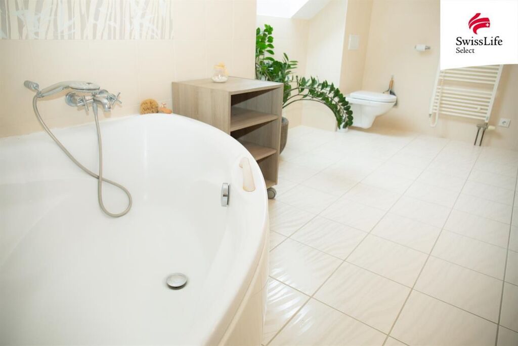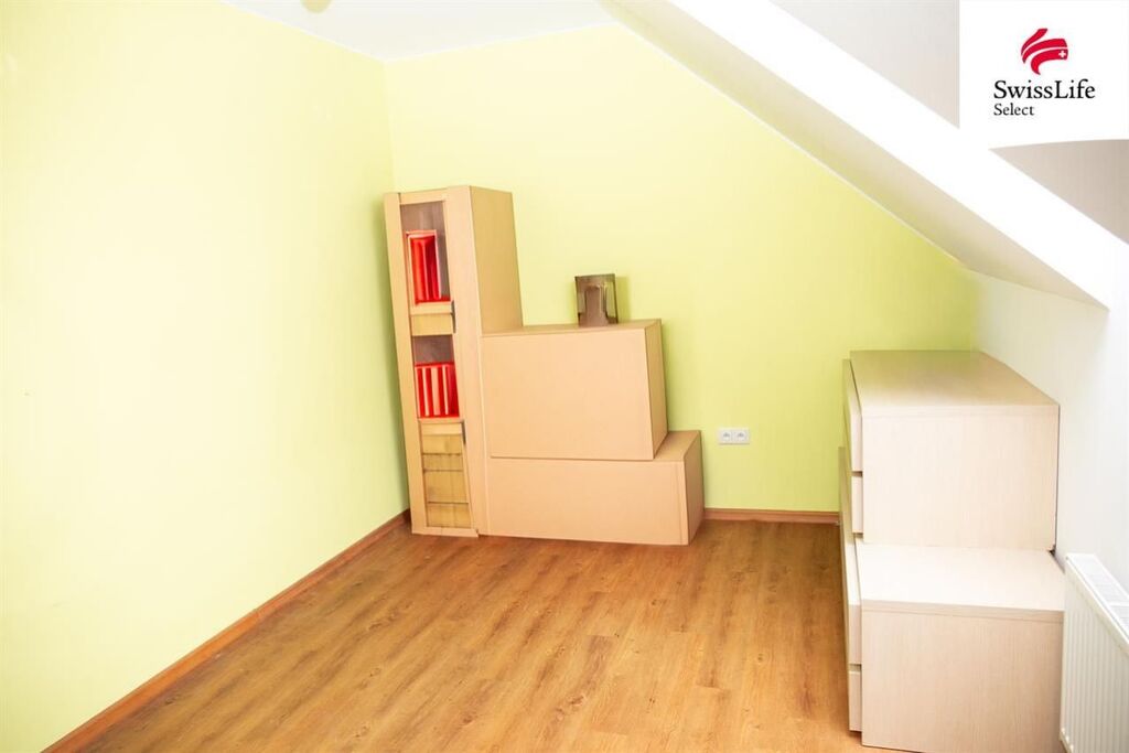 Patro: 3 ložnice s nádherným výhledem na Orlické hory, prostorná koupelna s rohovou vanou a dvěma umyvadly, přístup na půdu možnost dalšího pokoje nebo úložného prostoru. Další úložný prostor je nad garáží.