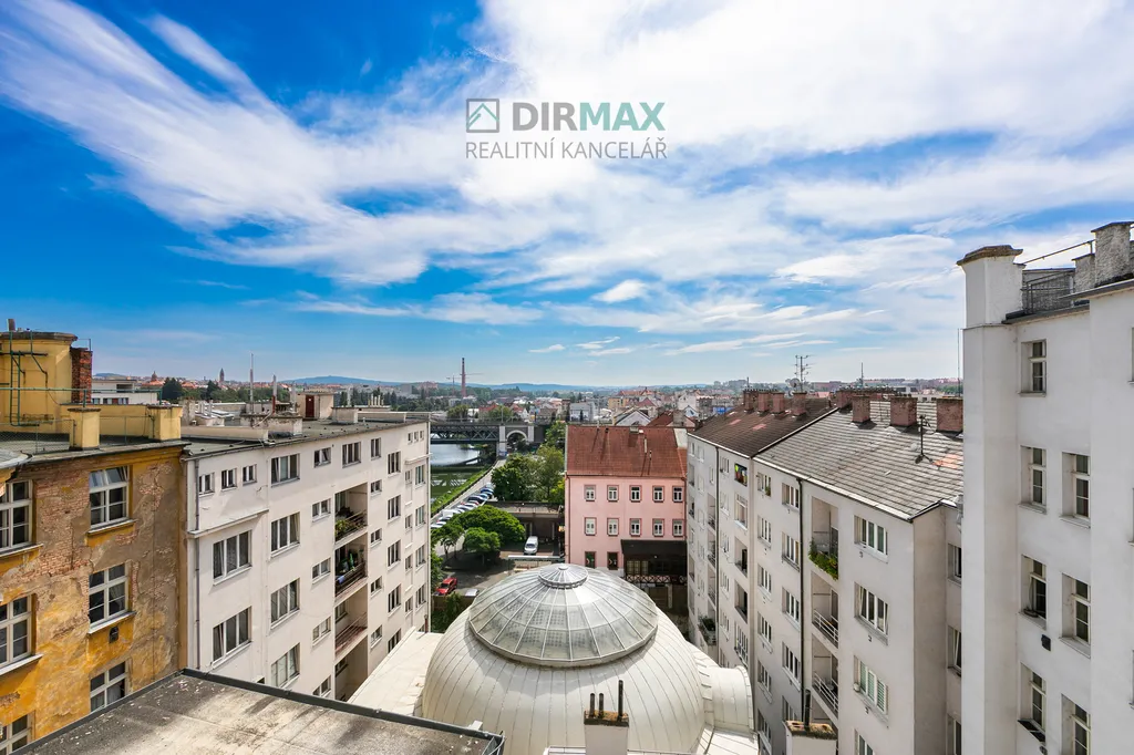 Srdcem bytu je denní místnost s prostornou kuchyňskou linkou, vyrobenou na míru, na kterou plynule navazuje jídelní stůl. Kuchyně je vybavena indukční varnou deskou, odsavačem par, troubou, myčkou na nádobí, mikrovlnou troubou a samostatně stojící americkou lednicí. Milovníka starých bytů jistě zaujme průzor z chodby bytu do ložnice a dále na přilehlý balkon. Z balkónu se nabízí jedinečný výhled – na Západočeské muzeum v Plzni, Šafaříkovy sady a řeku Radbuzu s náplavkou.