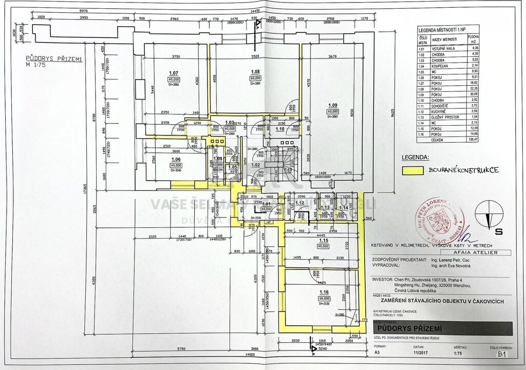 majitelé jsou schopni předat v souvislosti s koupí při vzájemné dohodě i ve fázi studie navrhovanou novou stavbu.