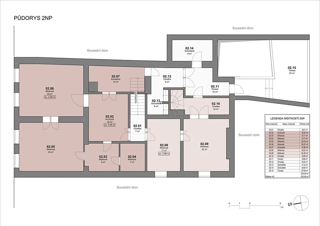 2. NP: Byt 1+1 (72 m2) s terasou/pavlačí o rozloze 30 m2 – skvělý prostor pro relaxaci či posezení.