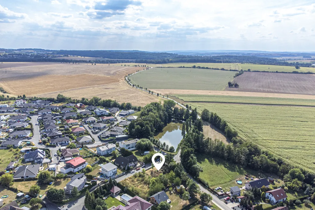 Pozemek je zasíťovaný – přivedena je elektřina (elektroměr), plyn (plynoměr) i kanalizace. Nachází se v klidné zástavbě nových rodinných domů, v ulici Nad Rybníkem, a díky okolní zeleni nabízí dostatek soukromí a klid.