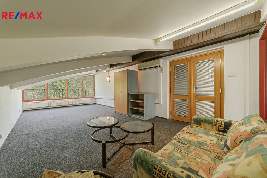 Druhé patro se vyznačuje prostornou společenskou místností o ploše 67 m², ideální pro školení či semináře, a pěti dalšími místnostmi, které mohou být opět přizpůsobeny podle potřeb nájemníka. I zde je k dispozici kuchyňka a sociální zařízení. Užitná plocha cca 187m2.