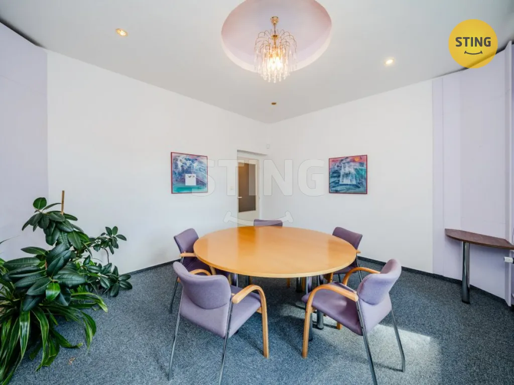 1. NP: tři samostatné kanceláře, prostorná zasedací místnost, dvě sociální zázemí a vybavená kuchyňka.