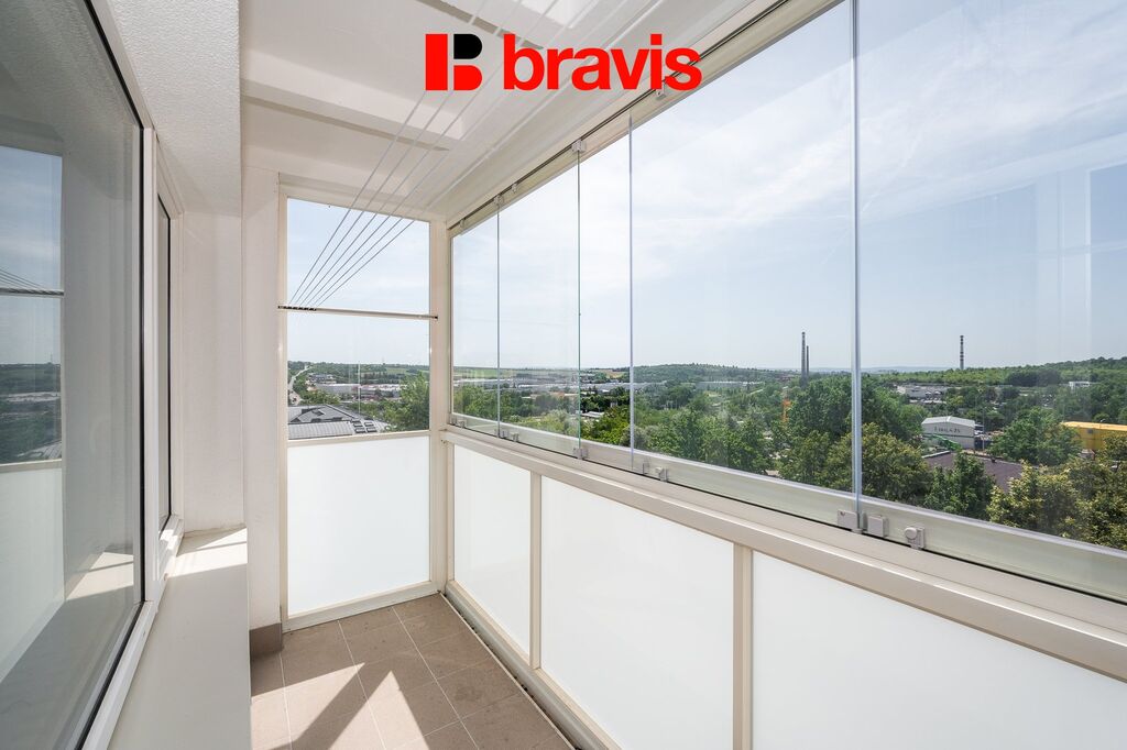 Zasklená lodžie o velikosti 5 m² nabízí nejen krásný výhled, ale i další prostor pro odpočinek nebo pěstování květin.