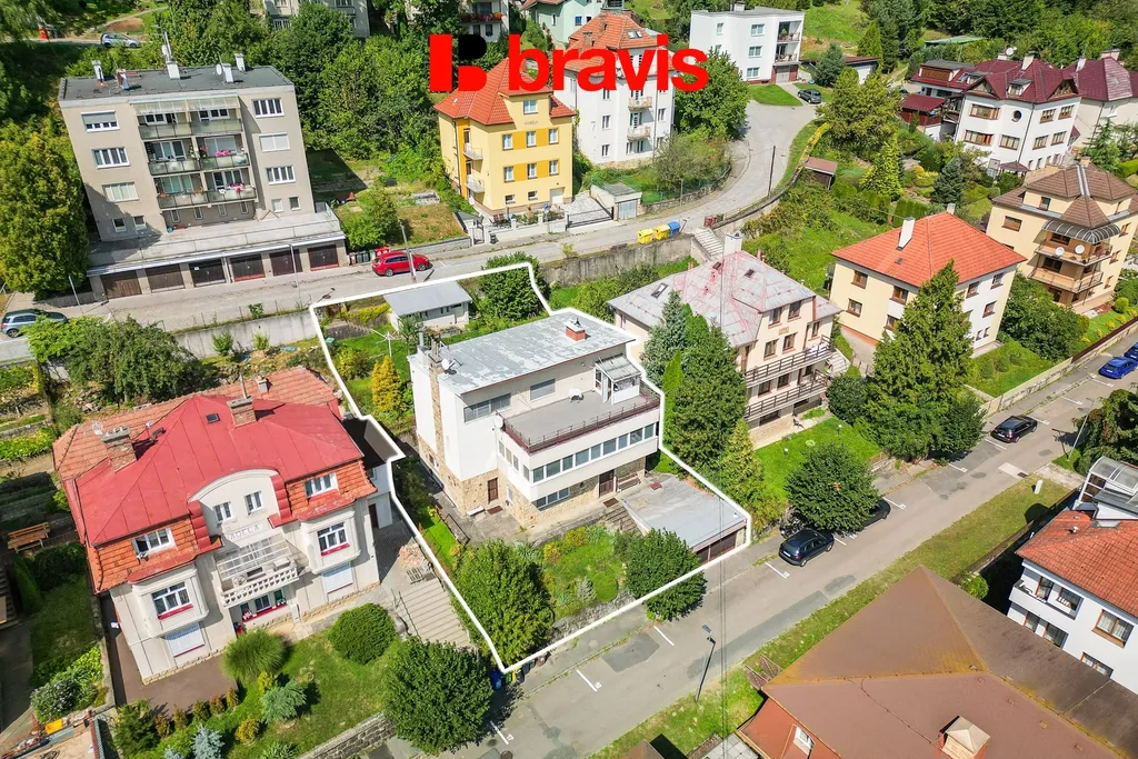 • Vila je situována na svahu Malé Kamenné čtvrti s krásným výhledem do údolí.