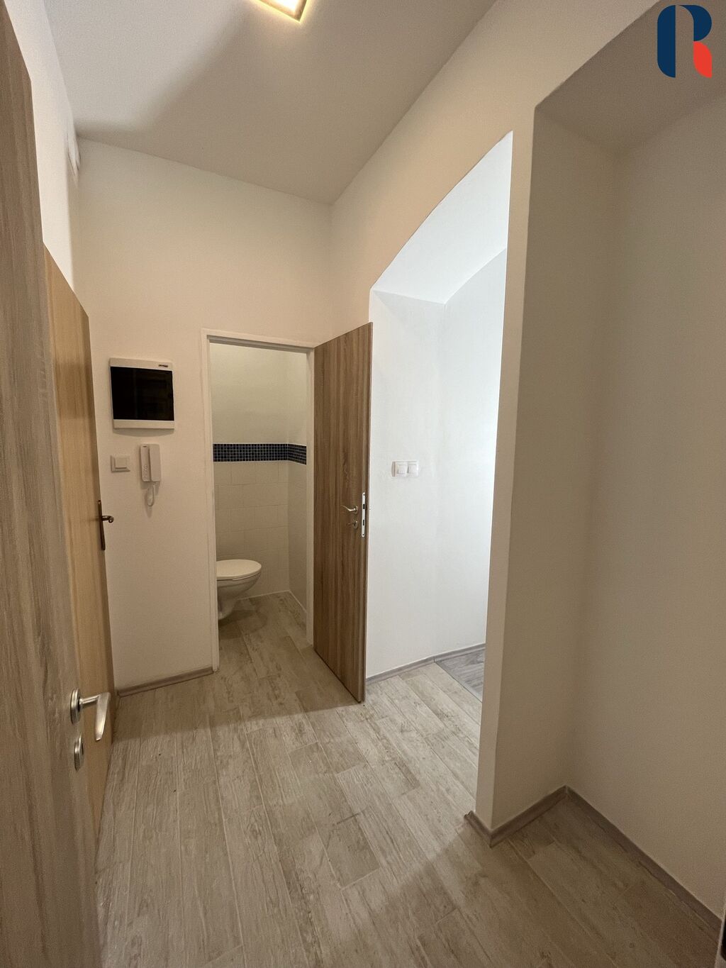 Byt je po kompletní rekonstrukci s novou dlažbou, plovoucí podlahou a novými prosklenými dveřmi. V bytě jsou nové skleněné konvektory s digitálním termostatem, nové rozvody elektřiny, vody a odpadu. Byt je vybaven TV, SAT a internetovou přípojkou. Byt se skládá ze vstupní chodby, pokoje s kuchyňským koutem, ložnicí, koupelnou s obkladem z mozaiky, se sprchovým koutem s podomítkovou baterií, se skleněnou zástěnou a samostatným WC s geberitem. Je vybaven moderní kuchyňskou linkou s obkladem z kamene, se spotřebiči (sklokeramická varná deska, horkovzdušná trouba, digestoř) a barevnými luxfery. Byt je vzdušný, světlý a elegantní.