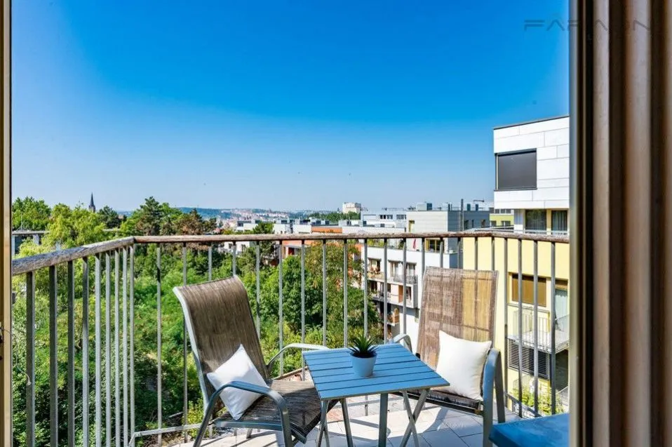 REZERVACE. Moderní, mimořádně prostorný a slunný klimatizovaný byt 4+kk (119,5 + dva balkony - 125,8 m) se dvěma balkony a unikátními výhledy na panorama Prahy, včetně Pražského hradu a Vítkova, stejně jako do zeleně přilehlého parku Parukářka. Nachází se v 5. nadzemním podlaží rezidenčního projektu z roku 2010 s vysokým standardem zabezpečení 24/7 recepcí, kamerovým systémem a soukromým dětským hřištěm ve vnitrobloku. Rezidenti zde mají zajištěn maximální komfort a pocit bezpečí. Součástí bytu je sklep a parkovací stání v suterénu domu. Klidná rezidenční část pražského Žižkova pak umocňuje příjemnou atmosféru pro moderní a pohodlné bydlení.