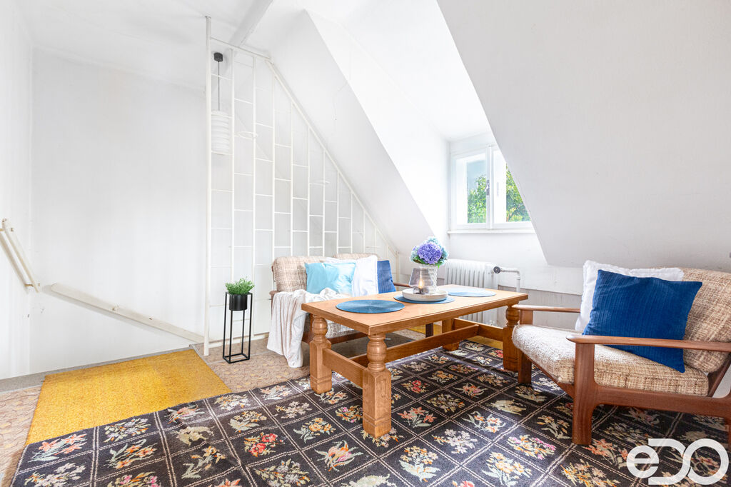 V přízemí se nachází kuchyně, dále WC, koupelna a dva obývací pokoje, které lze přizpůsobit dle individuálních potřeb. V patře jsou umístěny další dva pokoje, WC a dvě menší podkrovní místnosti, které mohou sloužit jako úložné prostory nebo pracovna. Součástí domu je rovněž půda, která rozšiřuje možnosti využití.