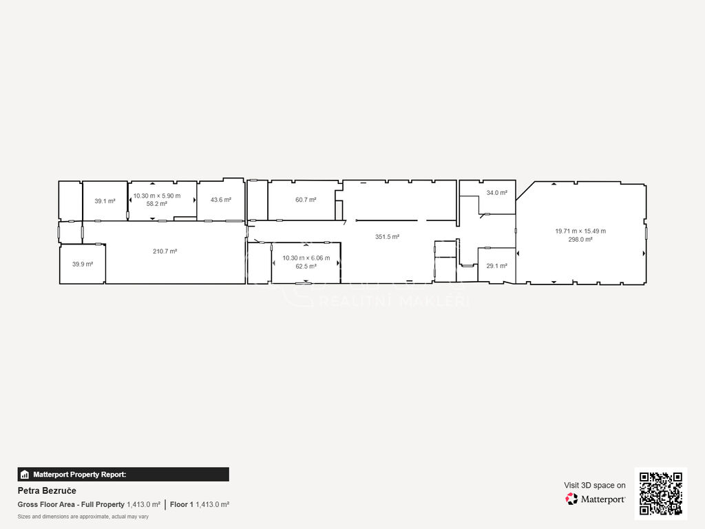- Další dvoje vrata na koncích budovy (1,75 m × 2,48 m), možnost využití nákladové rampy
